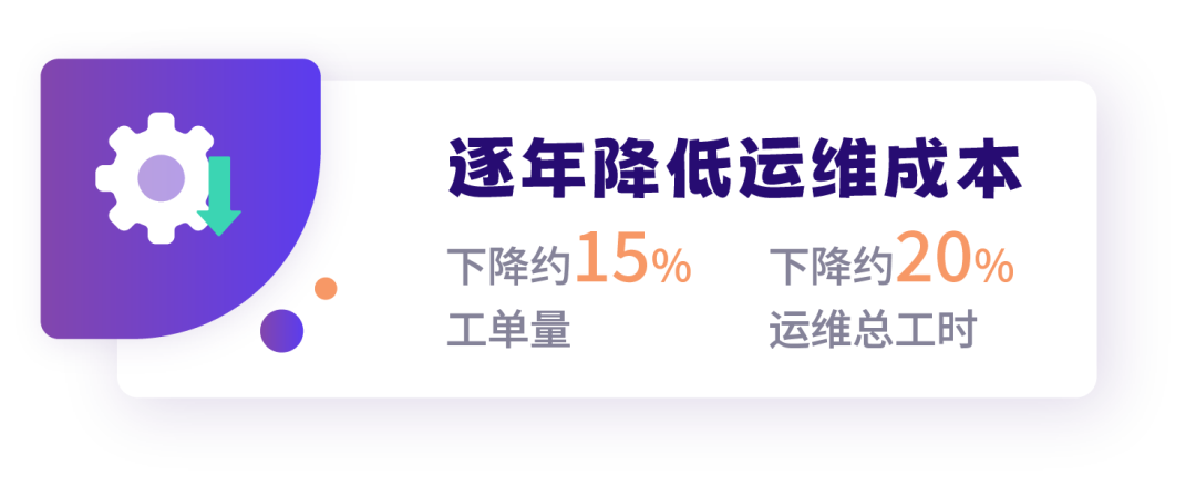 经过运维组一年的努力,元祖原有系统功能模块工单量下降约15%,运维总工时下降约20%,运维成本呈现逐年下降的趋势。