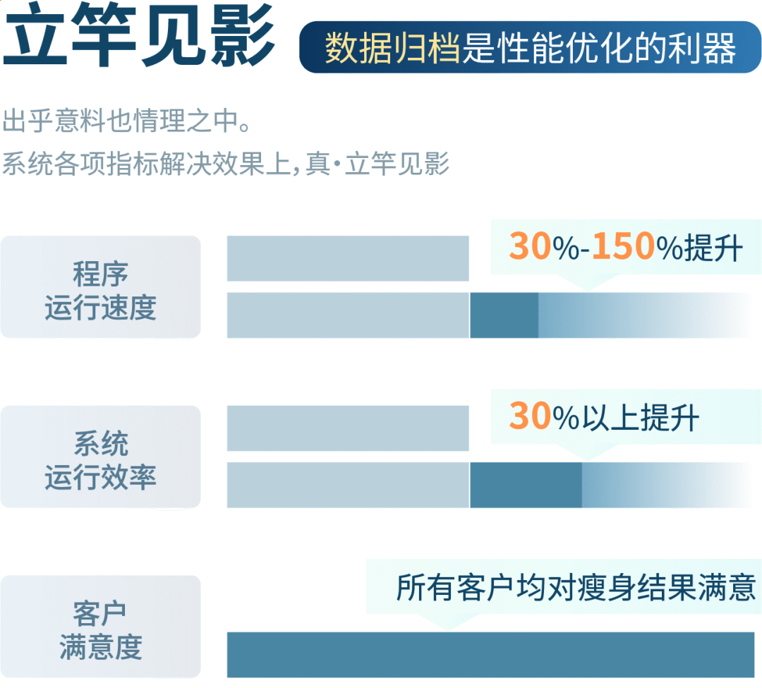 历史数据占用大量的软硬件资源,导致资源不足,对硬件的要求越来越高,需不断购买提升硬件,导致未来IT软硬件投资支出持续增大。