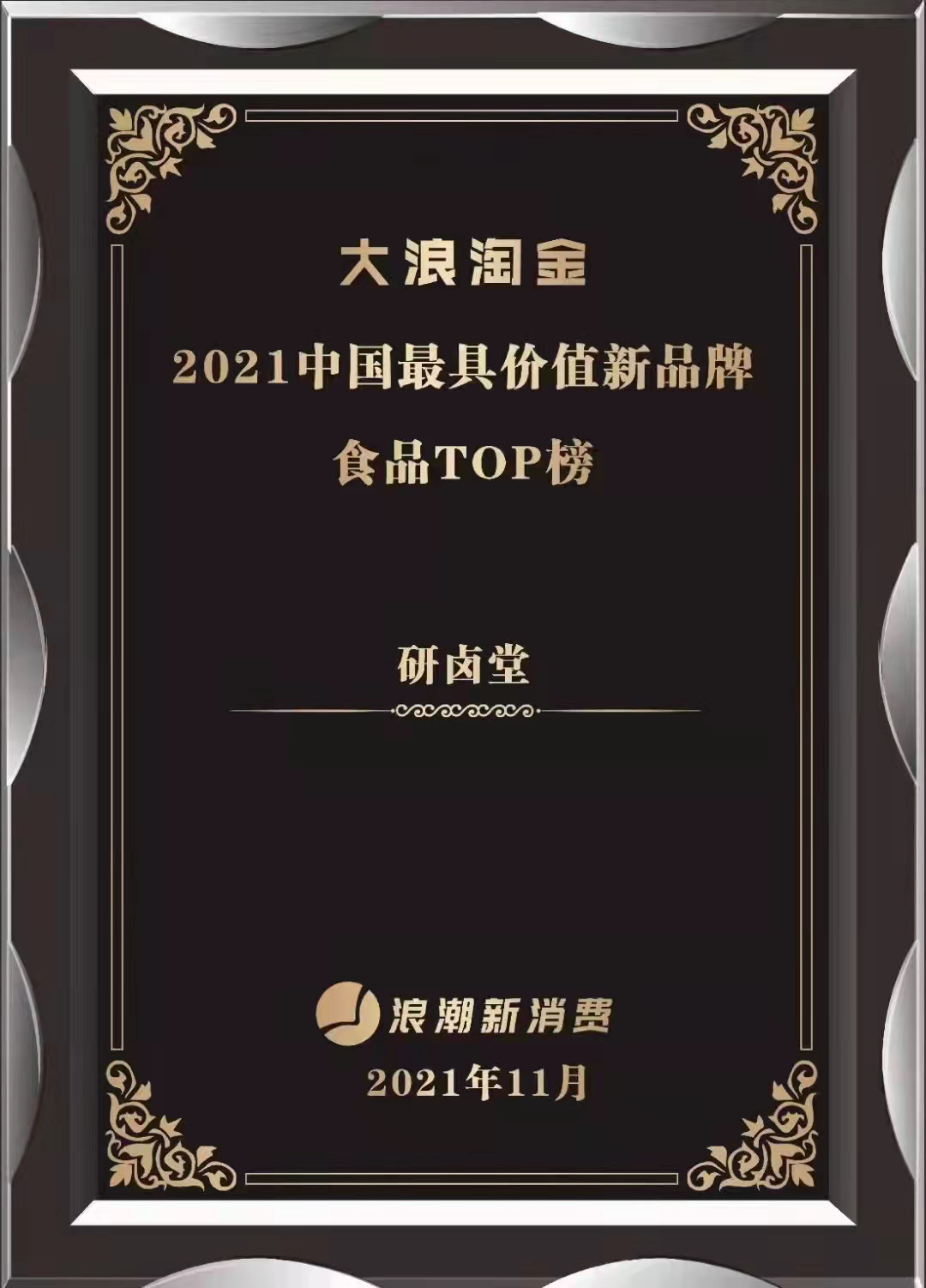 作为最早一批聚焦热卤赛道的新锐品牌,研卤堂在近年间,也荣获了各类行业奖项。2021年至今年初,研卤堂在《2021中国新品牌浪潮大会》上荣获消费品类2021中国最具价值新品牌食品TOP榜,印证品牌价值。同时荣获餐饮业内的头部媒体-红餐网颁发的2021年度中国餐饮最具商业价值品牌。