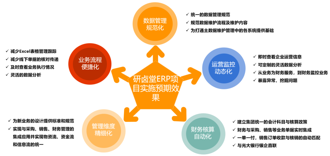 全面推广研卤堂ERP为经营管理带来更多价值,将规范的管理流程固化到ERP系统中,为研卤堂的信息化全面拓展和深化奠定基础。