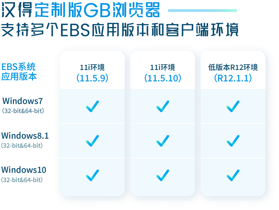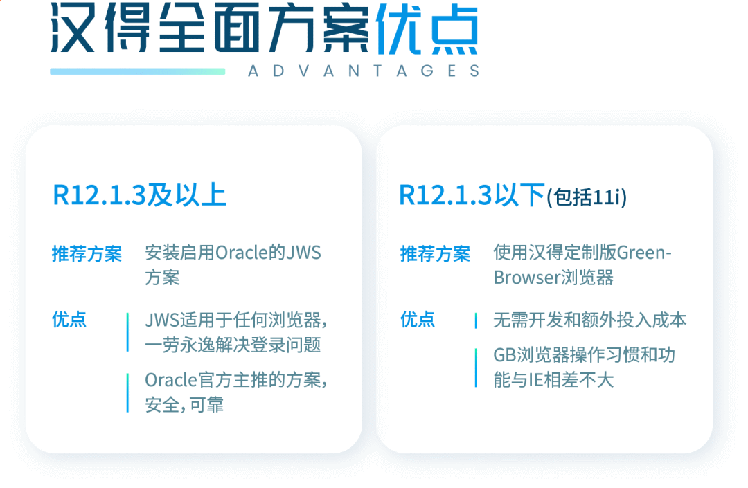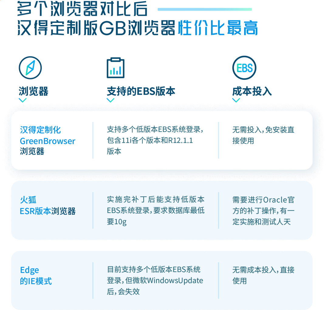 以上就是IE停用后,我们根据EBS系统所有的版本提供的汉得全面解决方案。
