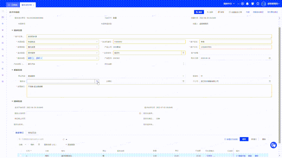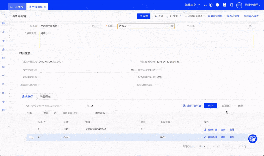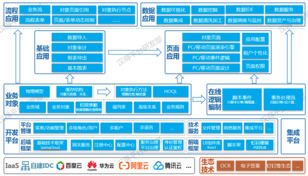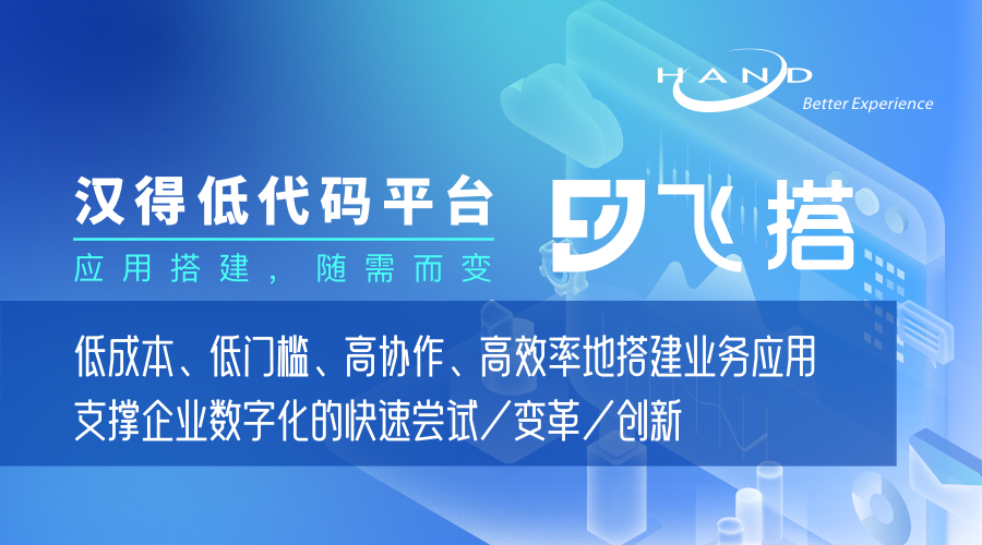 千日修以返初心,千万锤而成一器。在横跨五个迭代、经过长达三个月的精细打磨后,飞搭2.3.0RELEASE终于正式对外发布! 飞搭概览 基于汉得数字化平台HZERO生长的飞搭FeiDa,是秉承着先进低代码理念打造的融合化aPaaS低代码平台。 作为HZERO生态的重要组成部分,飞搭FeiDa充分融合了HZERO平台丰富强大的平台能力(灵活权限配置、支持国际化、支持SaaS、可前后端个性化及扩展、高安全、高性能等)、组件能力(流程平台、集成平台、数据平台等) 同时以业务化的数据模型、可视化的交互组件、全面化的逻辑事件及灵活化的脚本&事务处理流的后端逻辑编制能力,赋能企业B端应用在线化灵活搭建的能力,支撑企业普惠化(低门槛、高协作)、敏态化(高效率)和低成本化地快速响应市场变化,加速复杂业务场景落地。 ▲aPaaS平台整体架构 ▲aPaaS平台体系特性 飞搭优势 目前市场上的一些低代码产品,或着眼于业务流程链路较短和控制较少的OA单据场景,或着眼于针对某些特定行业/业务/功能,无法在保证业务灵活配置性的同时,支持更核心、更复杂的企业业务流程。 针对这一痛点,飞搭2.3支持在线配置复杂的前端页面、后端控制或处理逻辑,可作为通用底座支撑企业实现复杂业务场景的建设。 场景示例 页面内字段/组件联动 01、根据某字段值控制其他字段的可用值范围 02、某字段维护时联动给其他字段赋值 03、某字段维护时联动使其他字段只读/必输 04、字段不同值与角色联动使按钮只读/不可见(可实现状 态流转): 结合角色可使用的操作按钮,可实现不同角色针对单据做不同处理,改变单据状态,实现单据的状态流转 05、对象头字段不同值联动使行TAB页不可见 角色联动控制页面内字段/组件属性 06、控制不同角色使用页面时部分字段不可见/只读 对象数据联动 07、对象字段关联应用其他对象非主键字段(如编码字段): 比如采购订单头对象的"采购类型编码"字段关联采购类型对象的"类型编码"字段 08、应用从主关系联动保存行与头: 可多层从主关系对象同时保存,比如采购订单头表单、行列表、发运行列表同时保存 09、列表多行保存时创建对应额外数据: 列表多行行内编辑一起保存,生成主记录的同时创建相关记录,比如采购订单头列表在行内编辑保存时,同步创建生成了采购订单历史记录 10、查询头时可展示汇总查询行数据: 比如在采购订单头信息上查到其对应所有采购订单行的行数量汇总(即行数量总和) 对象数据校验与屏蔽 11、多字段组合控制数据唯一: 对象在保存时可根据多个字段判断数据是否唯一并进行报错,比如采购订单行根据采购订单头ID+行号控制唯一 12、通过公式校验判断数据有效性: 对象在保存时可根据维护的公式校验规则判断记录是否有效,比如维护订单行时行单价*行数量不能大于10000 13、屏蔽角色的可查询数据范围: 比如控制A角色可查到订单状态=待提交的数据,B角色可查看到订单状态=待审批的数据,根据角色进行数据屏蔽 能力融合-流程应用 14、提交工作流进行单据处理 01 根据某字段值控制其他字段的可用值范围 飞搭支持通过A字段值控制B字段的选项范围。 如:在请求单的编辑页面,需要根据【请求单行】列表的【分类】字段控制【可受理模式】。 当请求单行列表的【分类】字段选择为【物料】时,【可处理模式】字段级联显示【可使用】、【可取消】、【可发货】三个选项;而当【分类】字段选择为【人工】时,【可受理模式】字段只可级联显示【可使用】、【可取消】两个选项。 02 某字段维护时联动给其他字段赋值 飞搭支持通过A(LOV)所选数据向页面内的B(LOV)字段赋值。 如:【服务站】LOV选择”广西服务站”后,自动将【办事处】赋值为其所属的”广西办”。 点击查看全部示例 >>> 联系我们 产品咨询或更多信息欢迎联系邮箱: hzero@sys.hand-china.com 汉得焱牛开放平台: https://open.hand-china.com/