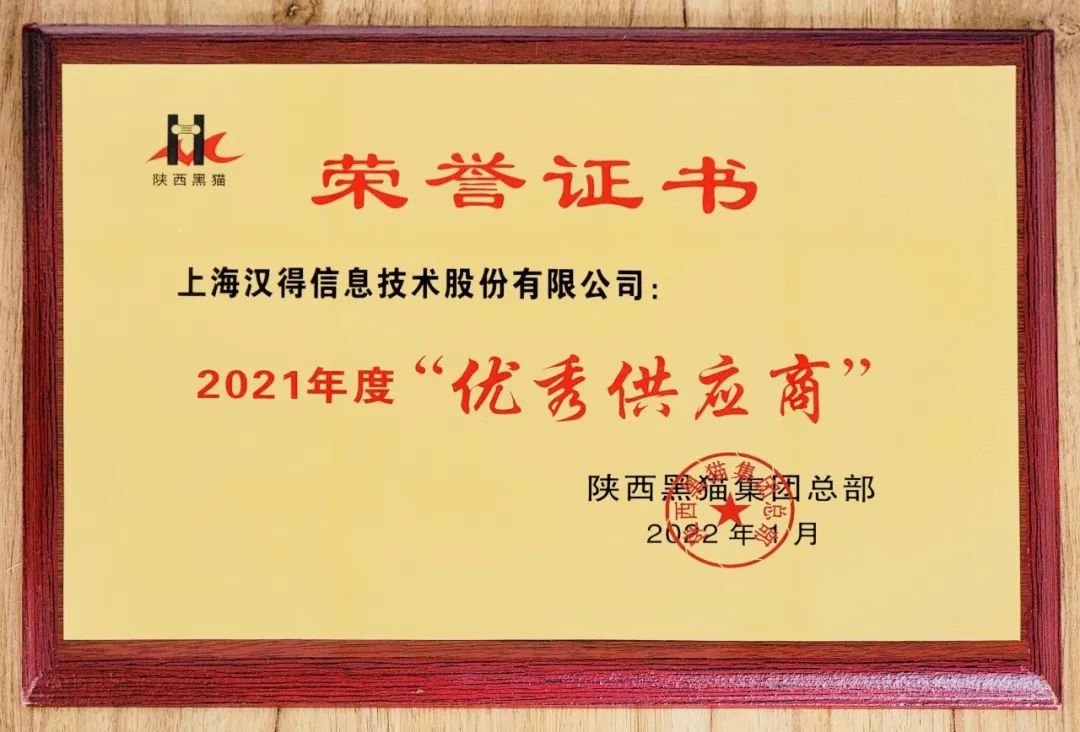 ▲ 陕西黑猫授予汉得信息优秀供应商称号