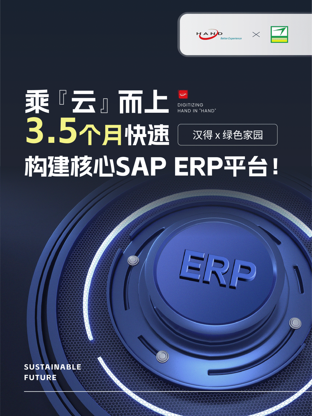拥抱变革,数字转型、诚信做人,踏实做事。汉得信息作为企业数字化综合服务商,将始终秉承成为链接企业管理与信息技术桥梁的使命,竭尽全力助绿色家园SAP项目圆满成功!