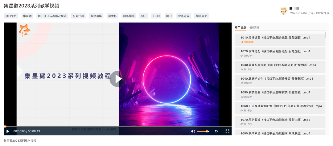 TA来了TA来了,集星獭(tǎ)系列教程TA来了!很多集成平台教程视频的诉求我们都收到了,赶在新年伊始之际,我们郑重推出集成平台2023系列视频教程,以飨观众。 系列视频产出初衷 首先,使用集星獭或接口平台、服务编排、前置机来交付集成需求的项目越来越多,对集星獭产品功能的快速上手、深入使用的呼声也渐趋强烈,这要求产品必须认真、严谨地完成系列视频的录制及整理工作来呼应项目同学的期待。 其次,集星獭产品提供了较为完备的集成功能来支撑项目集成作业,部分新特性未广为人知,我们需要进行详细地讲解甚至准备实际需求场景结合着来协助项目应用好这些新特性。 再者,有许多已经处理好的问题以及常用解决方案需要通过视频演示操作的模式才能更好地传播开来,通过学习视频再结合操练,同学们将获得更多的成就感及自信心,而不至于从入门到放弃。 系列视频特点内容 本系列教程满满的干货,并非只单纯地包含产品功能介绍,还从项目关心的服务选配、部署安装、问题Q&A等完整流程进行系统地课程编排。课程还包含这些特点: 1、本系列视频包含130余条目,分成接口平台、服务编排、前置机模块进行讲解。 2、系列视频进行了全局编号,编号从小到大代表从浅入深的产品功能的详解。 3、视频进行了统一规范,每个视频都由产品同学进行细心校对,配好字幕,还配套教材指南,为您提供良好观看体验。 系列视频内容概览 接口平台 教程的接口平台模块主要介绍如何注册接口、如何透传接口及透传配套的功能,如限流配置、接口授权等。也介绍了资产门户,一个集中的服务、接口资产管理中心。 服务编排 服务编排模块介绍了各个功能的概念及详细使用,重点介绍了编排各个插件节点的使用,如前序节点参数、聚合参数、全局参数的获取以及高频使用场景方案等。 前置机 前置机模块分别从服务端与客户端进行介绍,讲解基本原理与各个前置机适配器的使用,还特别讲解了SAP等对接过程容易碰到的问题及对应处理方案。 系列视频观看渠道 系列教学视频已上传至开放平台,在文档-视频中心首页,点击左侧菜单选中“集星獭JeeStar”后,可点击右侧“集星獭2023系列教学视频”跳转系列教程详情查看。 此外,在系列视频详情页的“相关资料”标签页,我们提供了系列视频教程中所使用到的教材以及完整的视频清单,可酌情获取查看使用。 我能从教程视频收获什么? 通过学习本系列视频,我们将获得但不限: 1、集星獭从选配到交付需求的完整生命周期的功能理解。 2、结合实践,小白同学将能准确使用对应功能熟练处理集成需求或问题;熟手同学将获得新特性更好地处理设计集成方案等。 3、使用产品落地时,集成作业将变得统一、规范,效率提高,变更响应快速,监控简单明了。 没有我关注的功能怎么办? 在观看学习系列视频过程中如发现问题或者有非常想了解的功能却未提供等情况时,欢迎通过开放平台提起问题咨询并提出您的「详细」想法,我们将及时处理或快速补录功能。 期待您的反馈。 联系我们 1. 如果您想了解集星獭更详细的功能介绍和产品信息,请查阅我们的产品文档。请在PC端打开 https://open.hand-china.com/document-center/doc/product/10167/10698?doc_id=217409&doc_code=120943 2. 如果您有疑问或者建议,可以通过开放平台进行工单反馈,问题分类请选择【产品/集星獭JeeStar】 https://open.hand-china.com 3. 相关产品咨询或更多信息了解,欢迎联系我们 邮箱:jeestar@sys.hand-china.com 电话:021-67002300