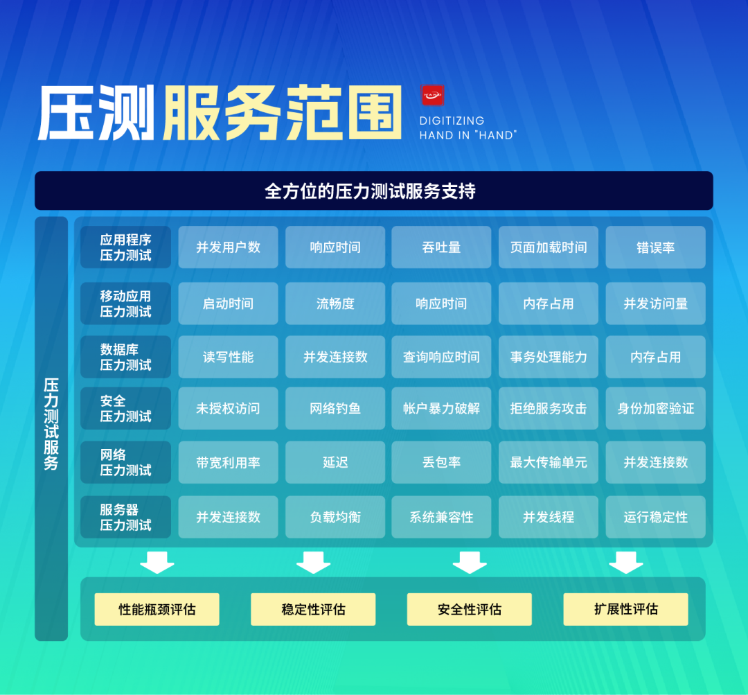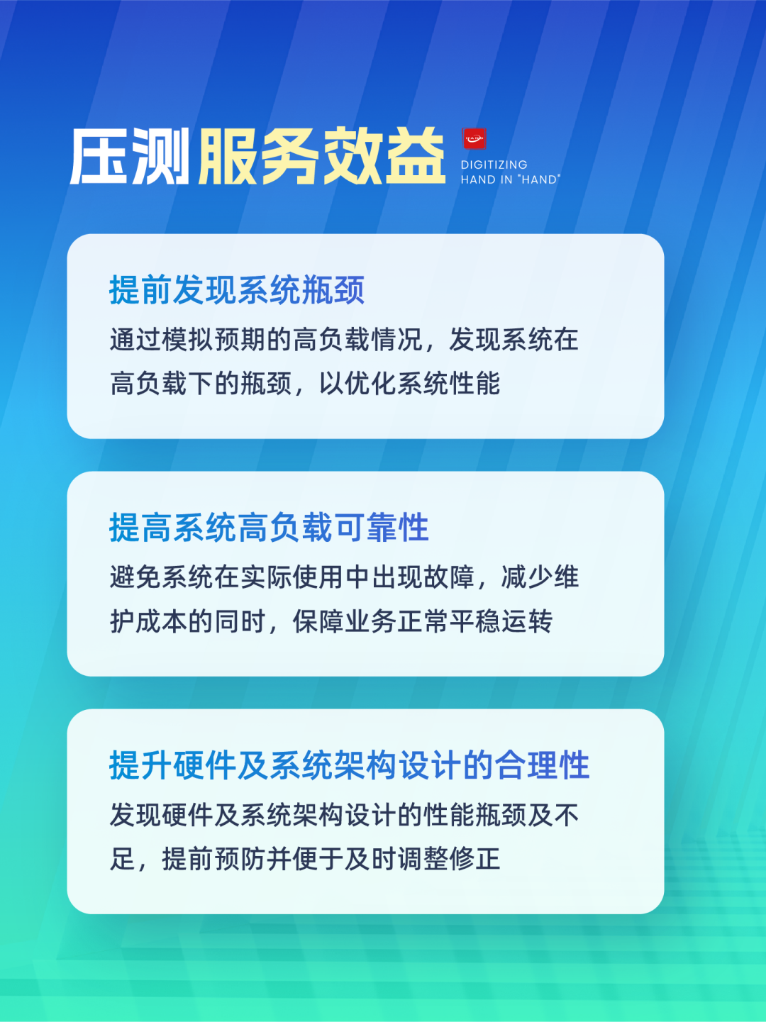 企业痛点系统上线后性能问题突出在系统上线后,无法承受预期的负载,出现加载缓慢、响应超时甚至系统崩溃的情况。月结等高负载运行期间问题频发在高负载运行期间,出现程序运行缓慢或报错、数据同步不及时或丢失等,严重影响正产生产。硬件及系统架构设计不合理系统长时间运行后出现卡顿、磁盘读写异常、网络延迟高、CPU空闲但系统运行缓慢、时常故障或停机、扩展性差无法推广新业务等情况。何为压测服务压力测试(简称压测)是一种测试方法,用于评估系统、应用或设备在高负载下的性能及稳定性。在压测服务中,受测目标会被推向极限,模拟其实际使用时的高负载情况,会记录响应时间、吞吐量、并发用户数等指标,以评估其性能和稳定性,并找出系统瓶颈或问题。为企业提供全方位支持压测服务CDS汉得数字化运营服务中心汉得数字化运营服务中心拥有专业的技术团队为客户提供有力支持。专业技术团队汉得数字化运营服务中心拥有 100+ 专业技术人员,其中有 20+ 超过10年的资深专家,具备各种套件产品及自研产品的实施、压测、优化、运维经验。客户成功案例目前已有 50+ 的客户成功案例。强大的项目团队与保障除专业技术团队外,汉得数字化运营服务中心拥有更多业务和测试顾问,能够对系统进行功能性测试,保证系统运行,拥有完善的项目管理体制,更好地提供项目实施与交付。如您想了解更多内容欢迎随时联系我们