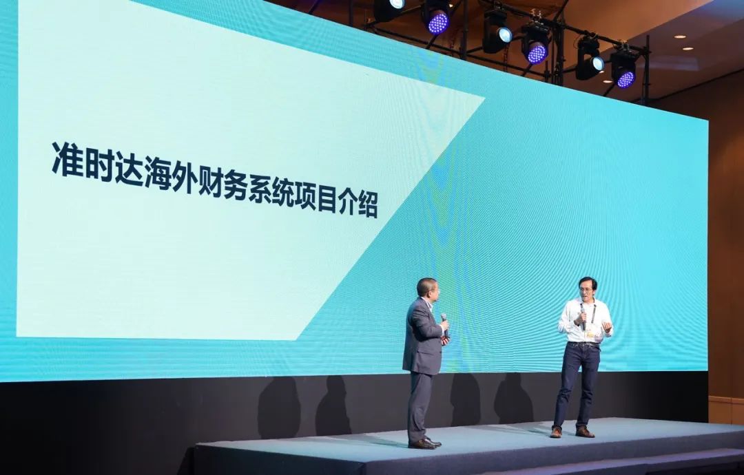 在思爱普中国峰会的合作伙伴专场分享论坛上,汉得信息高级副总裁、国际事业部负责人唐健与准时达首席技术官吕台欣共同带来《敏捷响应、致胜全球:准时达的出海之路》主题演讲。