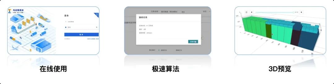 在线使用,基于3D模型的极速算法,提供更优装载建议。