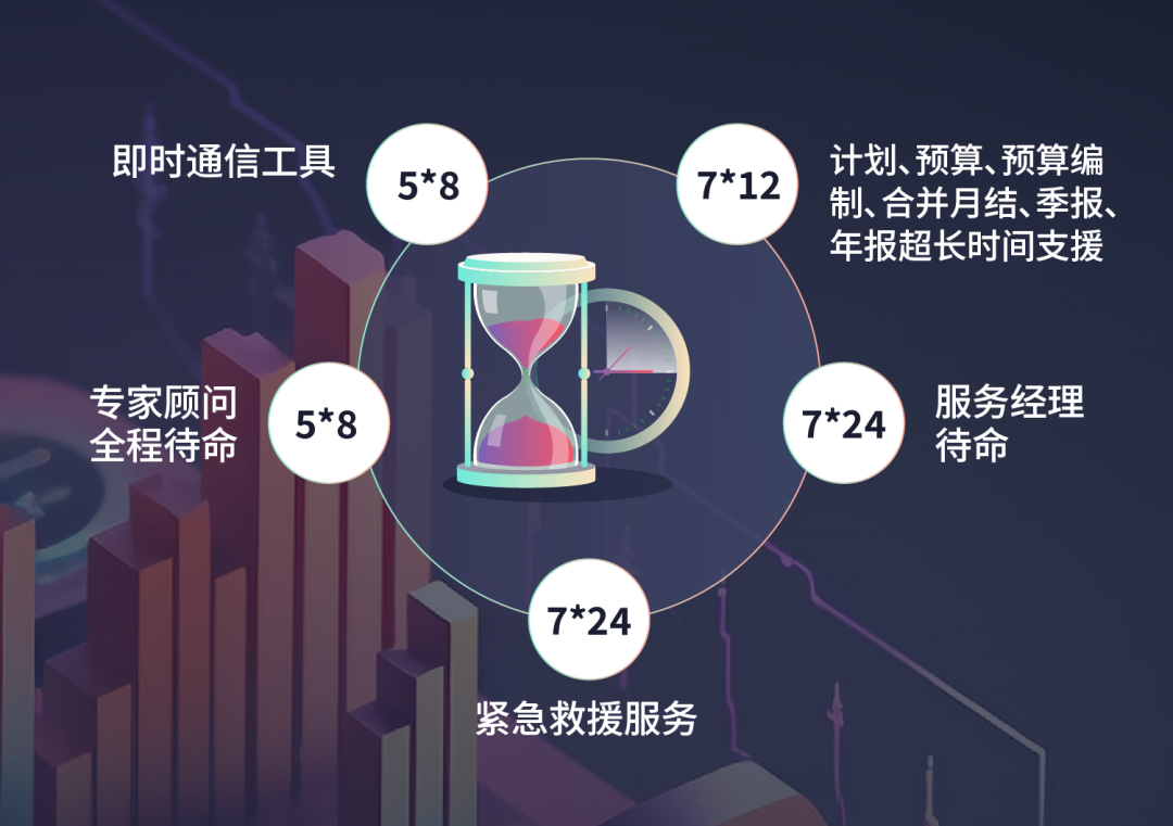 年度预算编制,月、季度滚动预测期间,7*12小时支持;