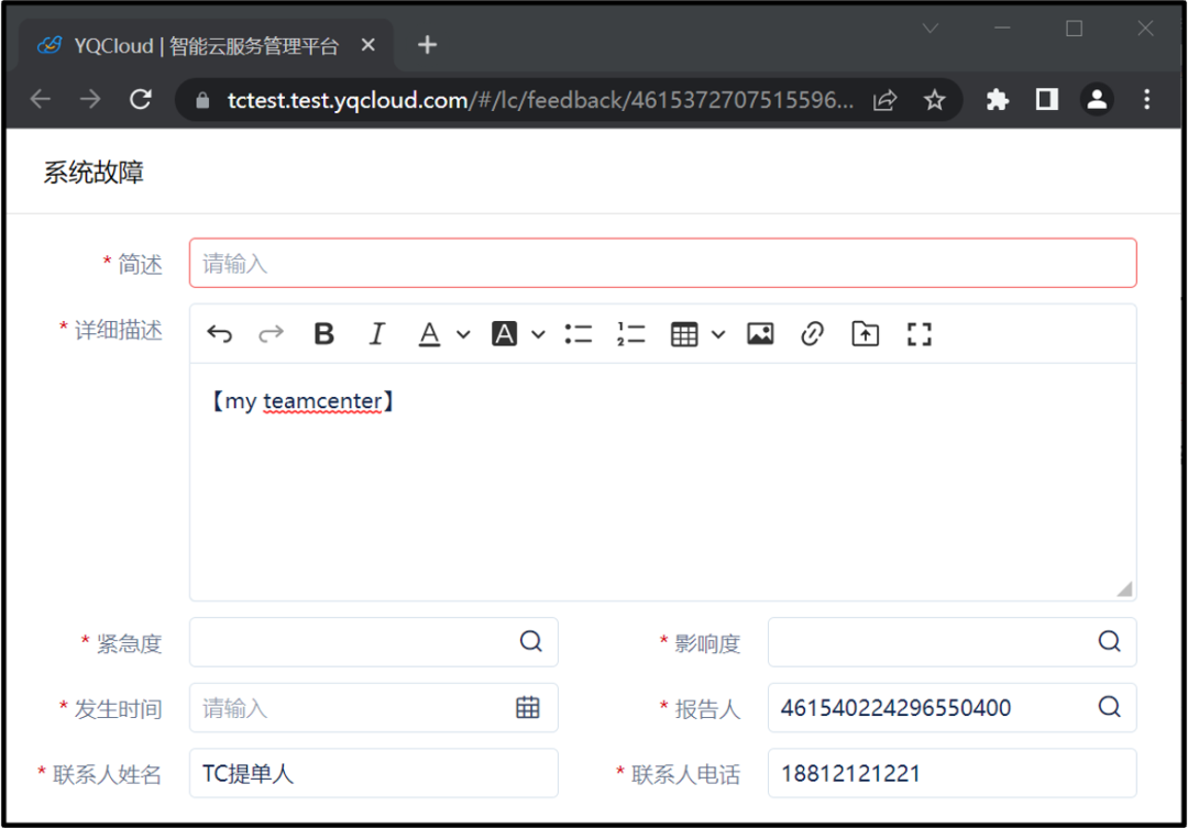 自动填充基本信息,包括电话,提单人,发生时间等,减少用户在填写工单时的手动输入,提高了工单提交的便捷性。