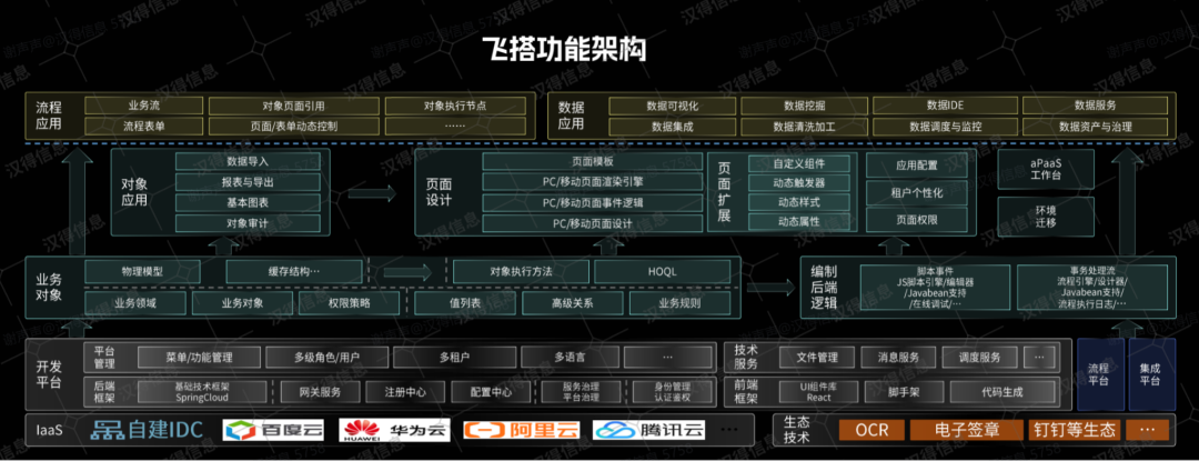 在2023汉得新一代产品体系发布数字平台专题峰会,我们围绕汉得HZERO开发平台、飞搭低代码平台、管理平台、AIGC平台、H-One(HDSP)数据中台等内容,为与会嘉宾深度解析了汉得数字化融合平台的全面能力。汉得数字化融合平台,赋能企业数智应用,助推企业业务高效,提供一体化的从高&低代码普惠应用开发→低成本统一IT管理→高效系统间数据、应用的集成融合→实际的应用+AI创新落地能力。赋能企业数智应用汉得数字化融合平台峰会开场,汉得研发中心总架构师陈小康,首先介绍了HZERO从应用开发、应用管理到应用集成、数据融合到应用+AI化创新的全面能力。“我们的目标是服务好企业,以最佳实践来帮助企业成功。HZERO平台是为企业高效落地应用、管理应用、应用集成与应用创新而生,沉淀了200+组件、300+功能等各种能力。HERO 体系是这几年我们通过1000+客户案例不断沉淀打磨的企业数字化体系最佳实践,我们希望以平台来成就客户,帮助客户 From ZERO To HERO 构建企业自主可控的一体化体系,以平台来帮助客户降本增效,不断获得成功。而我们的平台也会同客户一起,不断迭代、沉淀和完善下去,帮助更多的客户成为 HERO!”汉得HZERO平台汉得HZERO平台致力于以普惠与高效为核心理念,赋能企业构建统一开发体系/生态。普惠的理念是让使用者都能享受到平台(内置多功能、提供多组件)带来的红利,无论大小企业、各种行业,只需一定投入就能获得有效产出;高效的理念是让使用者能复用平台各能力,以组装式快速构建出应用,并且支持灵活的扩展便于持续、快速迭代。同时平台在安全性、可拓展、信创支持等方面持续进化,为企业提供一个运行够稳定、生态够丰富、实践检验够充足、开放性够高的数字化底座。汉得HZERO平台架构师陈显智对汉得数字化平台的架构情况、技术特点以及解决方案等进行介绍,并探讨了企业数字化落地过程中的关键问题。他为现场嘉宾介绍了汉得数字化平台的架构情况以及各个技术平台的相互关系,明确了HZERO平台在整个架构中的定位。详细解析平台的技术栈和技术特点,并重点强调了平台的几大特性,包括组件丰富、高可拓展、高安全性和全信创支持。特别是对组件的丰富性和高可拓展性进行重点介绍,平台目前已预置200+技术组件和300+开箱可用的功能,涵盖常用的业务应用所需的基础能力。此外,为了加速用户快速构建自己的业务系统,平台提供在线可选配的模式为业务应用的构建和部署等提供便捷。陈显智围绕着平台的三种定位和六大应用场景进行说明,并结合案例展示了汉得帮助企业打造的数字化落地方案与专业服务能力。汉得飞搭低代码平台飞搭低代码平台,致力于赋能企业用户在线化灵活搭建各类应用的能力,提供功能强大的模型管理及编排能力,可视化的拖拉拽形式的页面设计能力,帮助用户实现不同层级的功能及权限管理,多样的页面样式及属性配置,灵活的页面字段及组件的联动控制。平台充分融合了集成平台、流程平台等丰富的平台能力,可快速的与内外部系统集成以及应用灵活的流程处理能力,支持高效配置实现各类融合应用。飞搭低代码平台架构师仝宇首先通过一个报销场景示例来展示飞搭低代码平台的灵活配置能力。此外还分析了某具体使用飞搭的项目在简单及复杂场景下对研发效率带来的不同程度提升。对于飞搭如何助力企业快速配置复杂业务场景这个主题,具体阐述了飞搭基于HZERO平台研发而来,可以利用HZERO平台提供的庞大、成熟的组件库,如班翎流程平台组件,集星獭集成平台组件等。飞搭基于模型驱动,模型管理具有可快速构建、复杂关系维护、记录触发器、API类型的业务对象、数据审计以及反扫物理表等能力,并且还提供事务处理流和脚本事件两个复杂后端逻辑编排的工具。页面设计方面,飞搭提供可视化的设计器,内置丰富的组件库,可以帮助用户快速配置业务功能,并且还提供值列表赋值、数据范围控制、属性样式条件生效、公式配置、权限管理、低代码页面和手写自定义组件灵活联动的能力。在页面事件编排方面飞搭有丰富的触发器以及可视化的事件编辑器,可以灵活的编排页面事件,比如触发流程启动,接口地调用等业务逻辑。在移动端,飞搭针对移动端特有的操作习惯,页面样式做了专门的适配。汉得管理平台管理平台提供低门槛的IT基础架构管理,有效管理主机、虚拟机资源并提供可配置的可观测、可治理的管理服务;提供统一租户、用户、身份、权限管理功能,助力企业安全、高效的管理企业各系统资源应用权限数据;提供各种统一认证支持,门户首页配置、工作台门户配置,内置低代码平台,快速构建门户应用;提供系统集成能力,降低IT管理成本。管理平台,让IT管理与应用变得更简单。汉得管理平台架构师张潇葳介绍了为企业IT部门打造的管理平台,旨在解决IT系统和基础架构管理的痛点。从资源与环境管理、监控与服务治理、身份与权限管理、单点与门户管理四个模块入手,逐步向与会嘉宾们介绍详细解决方案。管理平台提供便捷、提速、降本的资源与环境管理,解决了IT部门在IT系统和基础架构管理中遇到环境复杂、自动化管理难、资源分散、利用率低等问题。同时,为企业提供独立、可靠、透明的监控与服务治理,解决了架构复杂、故障难定位、运维工具分散等问题。在
