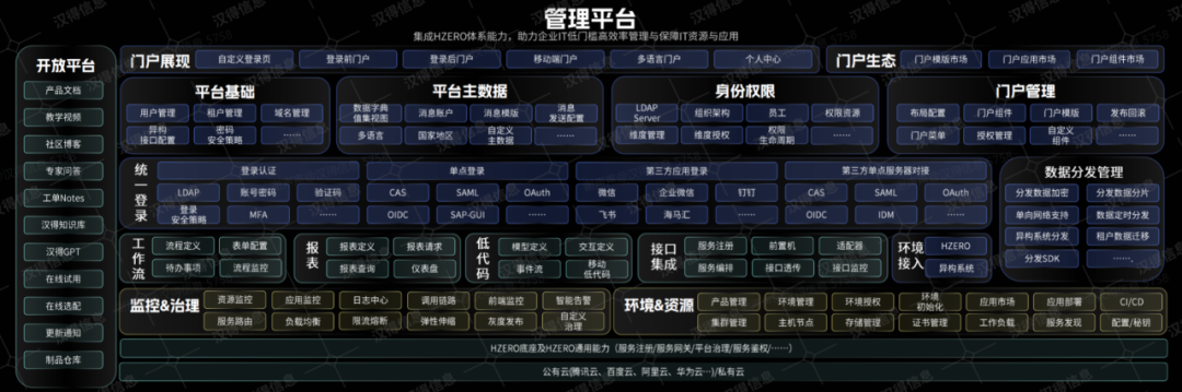 汉得HZERO平台致力于以普惠与高效为核心理念,赋能企业构建统一开发体系/生态。