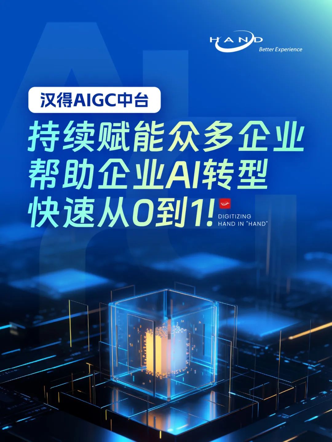 在AI浪潮席卷各行各业的大背景下,很多企业都在考虑如何开始进行AI布局与转型。汉得为了更好地帮助客户做好AI转型,此前已正式发布汉得新一代数字化产品体系HERO,其中核心产品AIGC中台,一经发布便收到了众多客户的热烈反响与咨询。自汉得AIGC中台正式商业启航以来,过去一个多月的时间里,针对企业AI转型策略与AIGC中台,已有上百家企业与我们进行了深入的交流探讨,森马集团、某租赁公司、某电力公司等诸多知名企业也已陆续与我们达成并开启AIGC合作新篇章。虽然AI这趟高速列车已经出发一段时间,许多企业率先踏上了AI转型的旅程,但仍有众多企业并没有及时上车。汉得AIGC中台将帮助这些企业快速搭上这班列车,顺利完成AI转型从0到1,全面提速AI化进程。汉得AIGC中台汉得AIGC中台,致力于帮助企业快速落地AI,提供多模型对接能力,内置智能对话应用、可自配置的多分类智能知识问答应用等,提供向量管理与应用能力、私有模型训练与应用能力,帮助企业高效自定义实现各种业务流程+AI能力,提供智能助手与AIGC应用编排能力,可低代码编排AI化业务流,实现企业流程智能化交互、引导、流转。汉得AIGC中台帮助企业AI转型快速从0到1汉得作为众多优秀企业信赖的数字化综合服务商,每当有新技术变革出现时,我们都有责任帮助客户提前探索与尝试,为客户的变革之路铺平道路。目前通过对大量在AI转型方面有所建树的企业进行调研分析,并与众多AI行业专家进行了深入探讨后,我们总结提炼出了一套企业高效实施AI的方法论——企业AI转型策略。我们希望将这套企业AI转型策略,能与大家一起分享,让企业在AI转型的道路上少走弯路。欢迎扫码预约直播获取汉得AIGC中台资料我们在汉得直播间一起详聊!