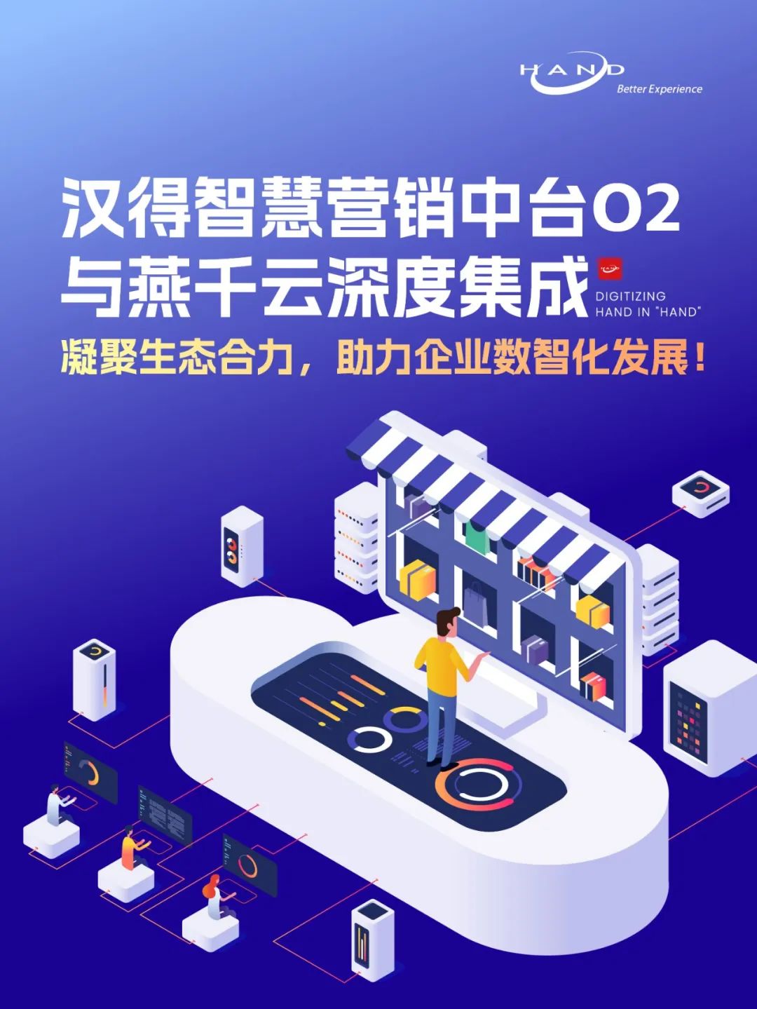汉得智慧营销中台O2与燕千云通过生态集成,燕千云能够通过O2平台的标准服务和功能,帮助企业提高产品研发和项目实施的效率;