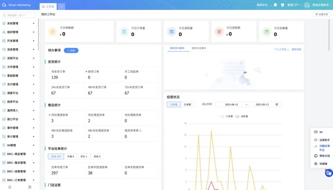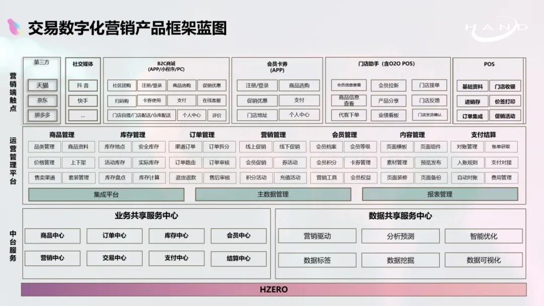 汉得智慧营销中台 O2 是一款旨在帮助企业整合官方商城及其他销售渠道营销数字化系列解决方案,它立足业务全局视角,借助商品、订单、库存 、售后、会员等微服务中心,构建跨平台业务运营管理工具。核心重点帮助解决品牌自建电商和全渠道电商交易的问题。
