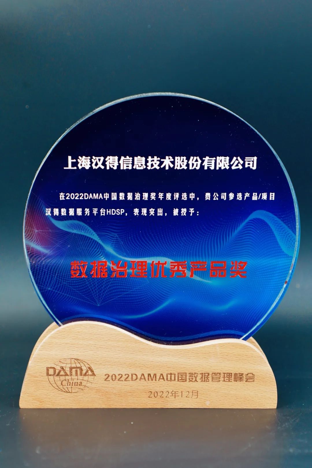 汉得数据服务平台HDSP荣获“2022DAMA中国数据治理优秀产品奖”