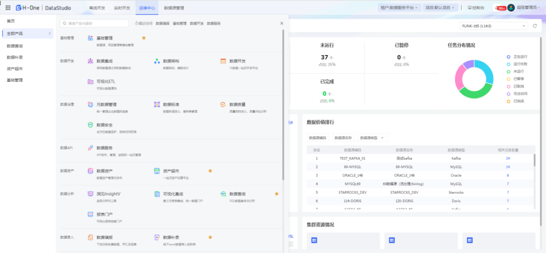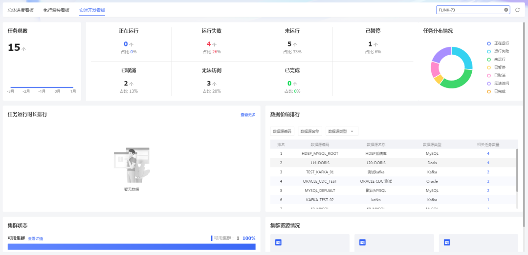 新增实时开发看板,实时开发任务执行情况全盘掌握,提升企业实时开发运维效率。