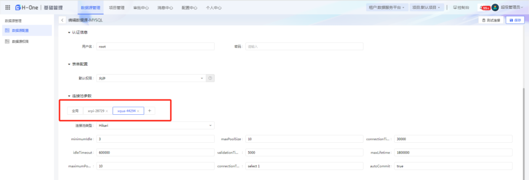 数据源管理支持按照微服务独立配置连接池信息,通过合理配置连接池的缓存大小,可以减少连接池的创建和销毁次数,提高数据库操作的效率。