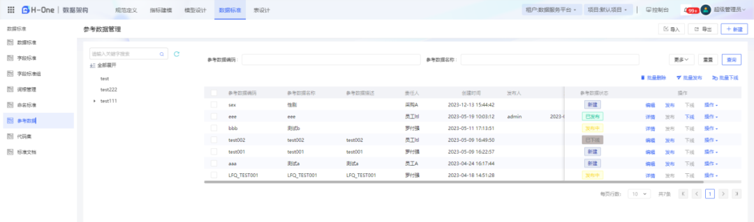 新增参考数据管理,参考数据是增加数据可读性、可维护性以及后续应用的重要数据。参考数据是对数据的解释,参考数据管理能够帮助企业对企业内的参考数据进行统一管理,为数字化转型建设提供参考数据依据。