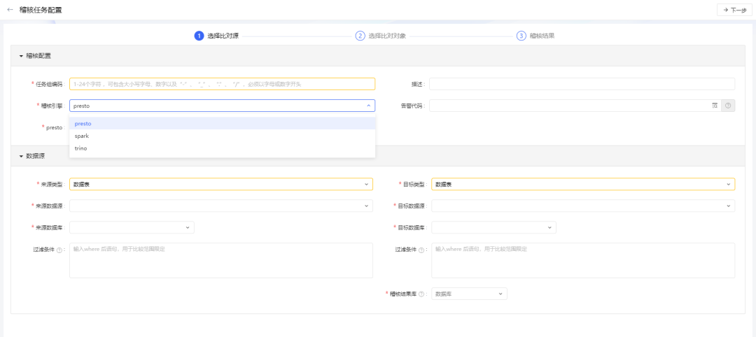 数据质量优化升级,紧握数据价值生命线,数据稽核能力全面增强,适配trino、spark两种稽核引擎,满足不同数据量的稽核诉求。