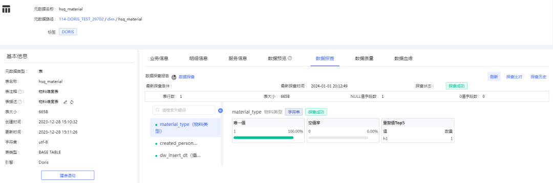 新增数据探查,支持一键探查数据近况,帮助用户深入了解数据成分、数据关系及数据格式。