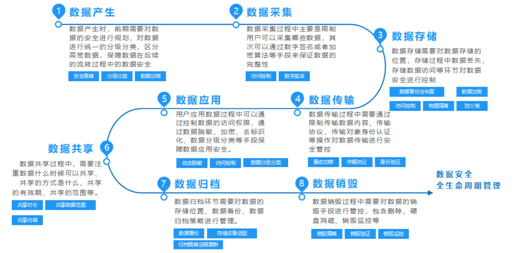 H-ONE提供从数据产生到销毁的全生命周期数据安全管理解决方案,在不同环节提供不同的数据安全技术手段,保障企业数据安全建设。