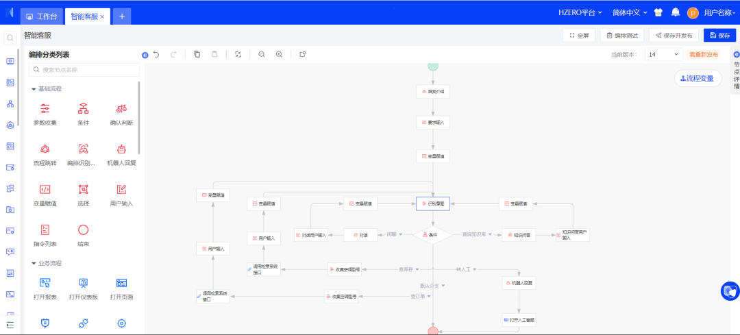 人工客服VS智能客服智能客服如今已深深渗透到我们的日常生活之中。从电商购物、外卖订餐,到出行服务,再到银行、基金、券商等金融领域,它们已经成为企业与客户之间无缝沟通的桥梁。相较于传统的人工客服,智能客服在提升服务效率、降低运营成本方面表现出卓越的优势。能够轻松应对海量客户咨询,确保每位客户的需求都能得到回应。成本较低,随着技术的不断进步,系统的维护和升级成本也相对较低。提供全天候、不间断的服务,无论是白天还是黑夜,都能保持一贯的高效与稳定。即便面对用户的指责甚至“辱骂”,智能客服也能保持冷静与理智,避免因情绪波动而影响服务质量。是人工智能还是人工“智障”?智能客服虽然在一定程度上提高了客户服务效率,但也存在一些明显的缺点:■ 理解能力有限:尽管智能客服在语义识别方面取得了一定的进步,但仍然存在理解偏差或误解客户意图的情况。■ 交互不够灵活智能、不够自然:由于用户问题的多样性,一般智能客服往往无法灵活自然地根据用户的意图进行差异化的交互,而是提供固定的回复或操作提示。这导致了用户在交互过程中经常受阻,转而寻求人工客服帮助,从而增加了人工客服的负担;同时因为用户感受差,进而影响了对产品、企业的满意度,导致企业丢失一些机会。■ 缺乏情感共鸣:一般智能客服无法感知客户的情感,因此在处理客户抱怨、投诉等带情绪的问题以及在同客户带有感情的交互时,显得力不从心。汉得融合AIGC平台带你体验全新智能客服应用汉得融合AIGC平台Agent定义的智能客服可以很大程度克服这些缺点,为企业打造真正意义上的智能客服应用。它具备出色的意图识别能力,能够精准捕捉用户多样化的需求,并迅速提供对应的带有感情的响应。比如,它根据用户的问题判断用户要问什么,然后可以依托融合AIGC平台内置的RAG知识库进行精准问答;或者调用大模型展开自然的对话闲聊;还可以与企业的各类系统对接,实现便捷的数据查询与交互。这些准确、多样化的交互模式,使得智能客服能够更好地满足用户的实际需求,提升整体服务质量和效率。结合汉得融合AIGC平台的这些能力,我们的智能客服有如下优势:01精准理解用户的意图和需求 凭借先进的大模型推理能力,能够深入分析用户的交互内容,精准把握用户的意图和需求。无论是简单的查询还是复杂的问题,智能客服都能迅速理解并作出恰当回应,确保与用户的沟通交互过程更加流畅自然。02灵活自然的交互能力具备高度灵活且自然的交互能力,彻底打破了传统客服中常见的交流障碍。它能够根据用户的各种意图,迅速提供针对性的闲聊、专业问答、自动转人工等多样化解决方案。这使得我们的智能客服能够适应各种复杂场景,提供更加流畅自然的交互服务。03拟人化增强通过进一步的拟人化优化,可以显著增强智能客服的沟通表达能力,从而提升其交流质量,让用户愿意做更多轮的交流交互,大大提升了用户的满意度。以下是一些灵活的交互场景:01闲聊模式假如智能客服判断出用户此刻的意图是闲聊,它会立刻切换为闲聊模式,为用户带来自然流畅的对话体验。在这一模式下,智能客服具备强大的自然语言处理能力,能够轻松应对用户提出的各种话题,并且可以为其设定聊天范围、角色定位以及聊天态度。02问答模式当智能客服察觉到用户的意图是询问产品信息、三包信息、售后问题等相关问题时,智能客服会迅速响应,从知识库中匹配相关信息后,即刻将提炼总结后的答案返回给用户。03调用系统API当识别到用户意图是想要查询产品库存、订单进度等信息时,智能客服收集到必要的信息后,即可调用对应系统的API进行业务处理和查询,并将查询到的结果回复给用户。04自动转人工传统的智能客服往往难以应对用户的负面情绪,且要求用户手动转人工服务,操作繁琐。然而,我们的智能客服系统具备出色的情感识别能力,一旦侦测到用户正在表达抱怨或不满,或用户主动要求转人工,便会立即自动转接到人工客服,确保用户得到及时、专业的安抚与支持,并针对性地解决实际问题,从而为用户提供更优质、更贴心的服务体验。AIGC产品介绍01Agent编排介绍Agent编排可低代码配置打开报表、打开页面、处理流程、知识问答、输出答复等流程,编排各类业务应用+AI流程。这样,用户就可以在应用中轻松地与智能交互助手进行对话,让它帮你执行各种指令。02配置介绍通过“参数收集节点”精准捕捉用户意图信息,随后利用“条件节点”配置条件连线。这些条件连线可映射至不同功能节点,涵盖对话节点、知识问答节点以及调用接口节点,确保用户意图得到精确响应和高效处理。对话节点巧妙运用大模型技术,能够与用户展开轻松自然的闲聊,让交流更加流畅自然。同时,该节点还支持多轮对话,能够深入理解用户的意图和需求,提供更加精准的回应。知识问答节点则配备了详尽的产品信息知识库,无论是通过文档还是QA形式进行问答,都能为用户提供准确、全面的解答。该节点还支持多轮问答,能够针对用户的疑问进行深入探讨,让用户得到更加满意的答案。调用接口节点则具备强大的接口调用能力,可以灵活对接内部或外部的接口,实现各种功能的快速集成。用户不仅可以自定义转人工的链接,方便随时接入人工客服,还可以调用检索系统,