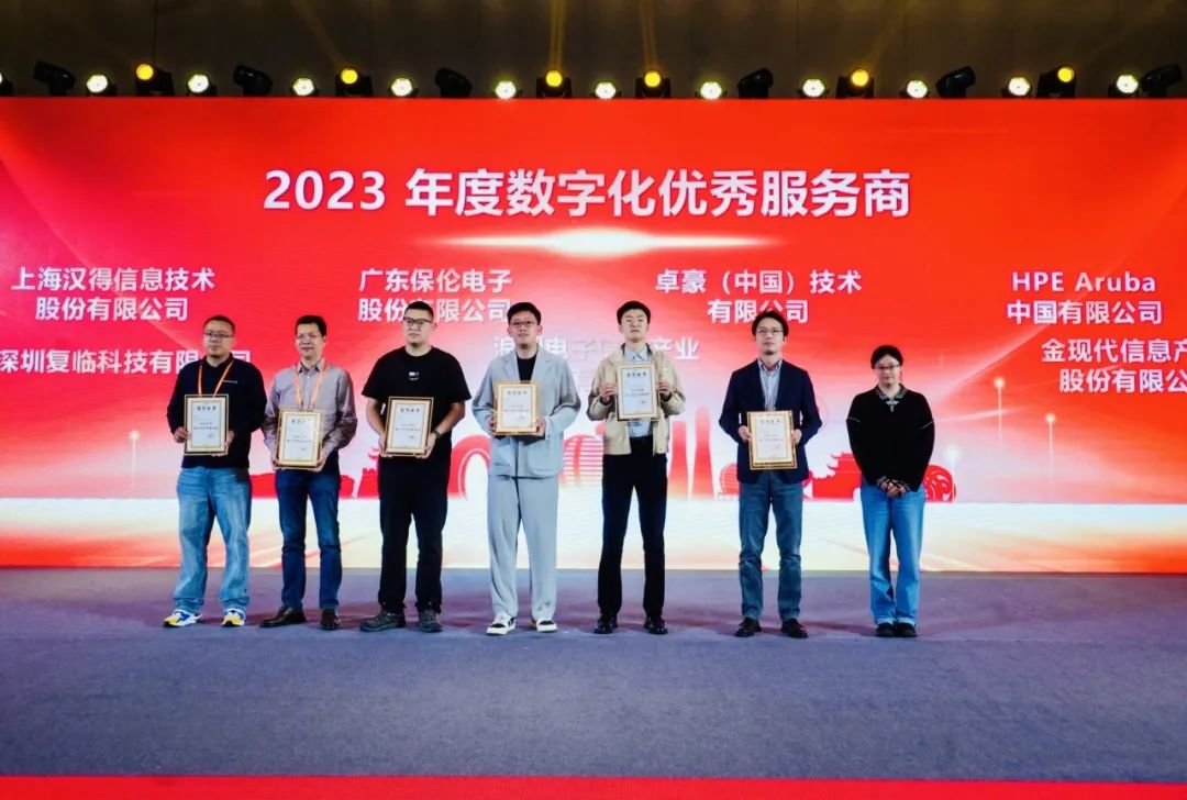 汉得受邀参加本次峰会,在会上对中企出海整体服务能力与应用实践进行了全面展示,并凭借在企业数字化转型的专业实力,荣获“2023年度数字化优秀服务商”称号,汉得Oracle销售部总经理黄志强先生作为公司代表上台领奖!