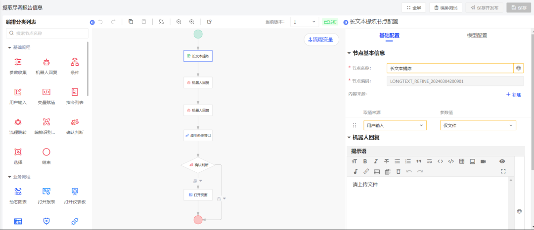 在当今信息爆炸的时代,我们面临着前所未有的数据量和信息复杂性。无论是企业管理者、数据分析师,还是市场营销专家,都面临着一个共同的挑战:如何从大量信息和数据中提取出关键信息,以支持业务决策和提升工作效率?文件整理的“隐形枷锁”在职场中,秘书和行政助理们需要负责从冗长的会议录音中提炼核心内容,梳理参与者和议题等关键信息。与此同时,数据分析师则审阅各部门数据报告,提取对决策至关重要的信息。然而,这些看似常规的工作背后,实则蕴藏着巨大的繁琐与易错风险。想象一下,一字一句地聆听录音并整理会议内容,稍有疏忽就可能遗漏关键讨论点;而在审阅数据报告时,由于每个报告的格式和指标各异,数据分析师们需要手动调整每个报告的数据格式,确保数据类型的一致性,再进行整合分析。数据的繁杂性常常导致错误的引入。这些错误不仅会影响工作效率,更可能导致错误的决策和不准确的报告,给公司带来损失。针对以上问题,汉得H-Copilot融合AIGC平台的大圣AI助手提供的Agent流程编排能力,能够轻松的帮助用户快速实现文档信息提取和处理等能力,从而提高工作效率,节省时间,降低风险,那么大圣AI助手是如何工作的呢?下面我们通过两个场景进行介绍:汉得融合AIGC平台轻松搞定大量信息大圣AI助手凭借其强大的自然语言理解和学习能力,能够与用户进行自然语言对话,根据用户的指令快速处理各类文件,无论是格式输出、提炼总结,还是查找关键信息,它都能轻松应对。更重要的是,大圣AI助手还能存储信息并结合低代码进行展示,让我们能够更加直观地了解文件内容。01按格式进行总结提炼用户能够便捷地将包括音频文件、图片文件、Word文档等在内的各类文件直接发送给AI助手。AI助手能够将这些文件内容高效地转换为文字,并进而生成简明扼要的总结,同时提炼出文档中的关键要点,分点陈列,使得用户可以更加清晰直观地理解内容。除此之外,用户还能根据个人需求,指定AI助手以特定格式呈现总结内容,实现个性化定制。02文件结构化数据提取和展示请观看视频详细了解:点击观看场景演示视频AIGC产品介绍01Agent编排介绍Agent编排可低代码配置打开报表、打开页面、处理流程、知识问答、输出答复等流程,编排各类业务应用+AI流程。这样,用户就可以在应用中轻松地与智能交互助手进行对话,让它帮你执行各种指令。02配置介绍通过音频识别节点将音频文件的内容转换成文字,可作为出参在其他节点中进行使用,除此之外,文件读取节点和OCR识别节点也支持将Word、PPT、图片等类型的文件转换成文本。长文本提炼节点巧妙运用大模型技术,能够将文件内容进行提炼总结,同时为优化提炼效果,支持“递进优化”、“逐块提炼”、“分组提炼”三种提炼方式。调用接口节点具备强大的接口调用能力,可以灵活对接内部或外部的接口,实现各种功能的快速集成。打开页面节点支持打开内部页面或外部页面,并支持维护页面的打开方式和页面参数。AIGC总结通过汉得融合AIGC平台的大圣AI助手,我们不仅能够释放双手,提高工作效率,还能确保信息的准确性和完整性。让我们告别繁琐的文件处理工作,迎接更加轻松、高效的职场生活吧!但这只是Agent编排所能带来的众多优势之一。不仅是文件中的信息处理,它还能够广泛应用于多种场景,如自动化流程处理、数据查询和分析、智能办公、智能单据维护等。未来,我们将继续拓展和完善汉得融合AIGC平台的Agent能力,增加更多应用场景支持,为用户带来更多创新和便利。让我们携手共进,共同迎接数智化时代带来的无限可能! ┈ AIGC实际应用场景包括:■ 构建企业专属AI知识库,提供问答助手■ 智能交互助手快速识别意图、执行指令,降低员工工作学习成本、提高工作效率■ 内置对话“导师”、“助手”应用,可指导、辅助员工各类工作场景汉得H-Copilot融合AIGC平台致力于帮助企业快速落地AI,提供多模型对接能力,内置智能对话应用、可自配置的多分类智能知识问答应用、提供智能交互助手与Agent应用编排能力。帮助企业低门槛地应用AI,提供向量管理与应用能力、私有模型训练与应用能力。联系我们1. 若您想体验试用 AIGC 产品,请登录开放平台https://open.hand-china.com/,在应用中心选择 灵猿-大圣AIGC平台 进行试用。2. 如果有疑问,可以通过开放平台进行工单反馈,问题分类选择产品“灵猿-大圣AIGC平台”进行工单反馈。3. 相关产品咨询或更多信息了解,欢迎联系我们的邮箱:openhand@vip.hand-china.com