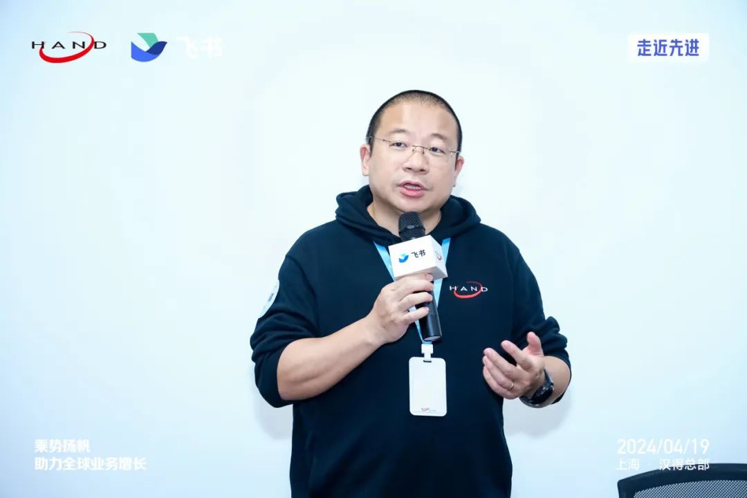 近日,汉得与飞书联合举办了“走近汉得”专场活动,对出海趋势洞察、信息化运营管理等热门话题进行了深入探讨。汉得的前身可以追溯到 1996 年成立的“上海汉得计算机服务有限公司”,于 2011 年在深交所上市,是国内知名的企业数字化综合服务商。汉得致力于成为连接企业管理与数字化技术的桥梁,帮助企业实现数字化转型。活动现场,汉得高级副总裁唐健介绍了汉得二十多年来的创业历程——立足于 IT 技术革新与管理实践,汉得已先后成立日本、新加坡、美国、印度、欧洲、印尼、墨西哥等境外一级/二级子公司,具备提供覆盖全球数字化服务的能力,20多年来汉得立足本土并支撑企业全球化拓展,目前已为超过6000家中大型企业提供数字化建设服务。携手应对井喷的出海需求和协同压力▲ 汉得高级副总裁 唐健2023 年,是中国企业大规模出海“元年”。作为本土颇具规模的企业数字化综合服务商,全球项目的增长对汉得组织内外部的沟通协调提出了更高的要求。全球布局的组织架构如何跨语言、跨区域、跨文化背景沟通?内外部协作如何高效运作?“尽管过去十年中我们曾不停探讨,但感受从来没有像这两年来得更迫切。”唐健坦言。 IT 咨询行业,业务核心需要不断地和客户交流、测试、做方案,“要想保持内部的高效,保证人的效率是最为重要的。”借助飞书,汉得将全球员工的业务沟通与办公协作整合到了同一个平台上,确保全球员工工作方式的标准化,实现内部信息的快速共享。“飞书为我们提供了一个很好的平台,让全球所有员工在统一的平台去协作。” 语言沟通是跨国企业最根本的基础。唐健坦言,飞书在多语言环境下的表现力让大家感到惊喜。“飞书在易用性、用户友好性上是非常贴合使用习惯的,我们现在不光是自己内部使用,也在把它大力地推向合作伙伴。” 用飞书助力 ERP走完最后一公里▲ 汉得 Global BG COO 林俊滨汉得公司从传统服务套件出身,并逐渐发展出自己的解决方案。谈及出海过程中面临的管理理念、管理机制和人才等挑战,汉得 Global BG COO 林俊滨表示,核心是创新管理模式,实现集团化管理与属地化策略的平衡。 他强调,汉得对外服务主要聚焦在两个方面:第一是搭建核心业务平台,向海外赋能;第二是建立合作伙伴网络,做好属地化合规。在这个过程中,需要做好全球化统一规范、属地化合规规范、业务级管理规范及周边地区其他规范这“四个规范”。 随后,林俊滨向到场嘉宾介绍了出海企业的数字化案例,并总结了汉得的企业数字化出海经验——业务变革先行、数据治理、本地方案实现以及知识方法统一。“我们发现飞书是一个非常有生命力、确确实实能帮助到我们的套件。”他指出,飞书和汉得所实施的 ERP 有非常好的配合,在知识转化、信息推送、数据安全等方面的应用满足了各业务系统对主数据一致性与及时性的要求。“我们在 ERP 里发现的问题都会推送到飞书上解决,飞书助力 ERP 走完了最后一公里。”