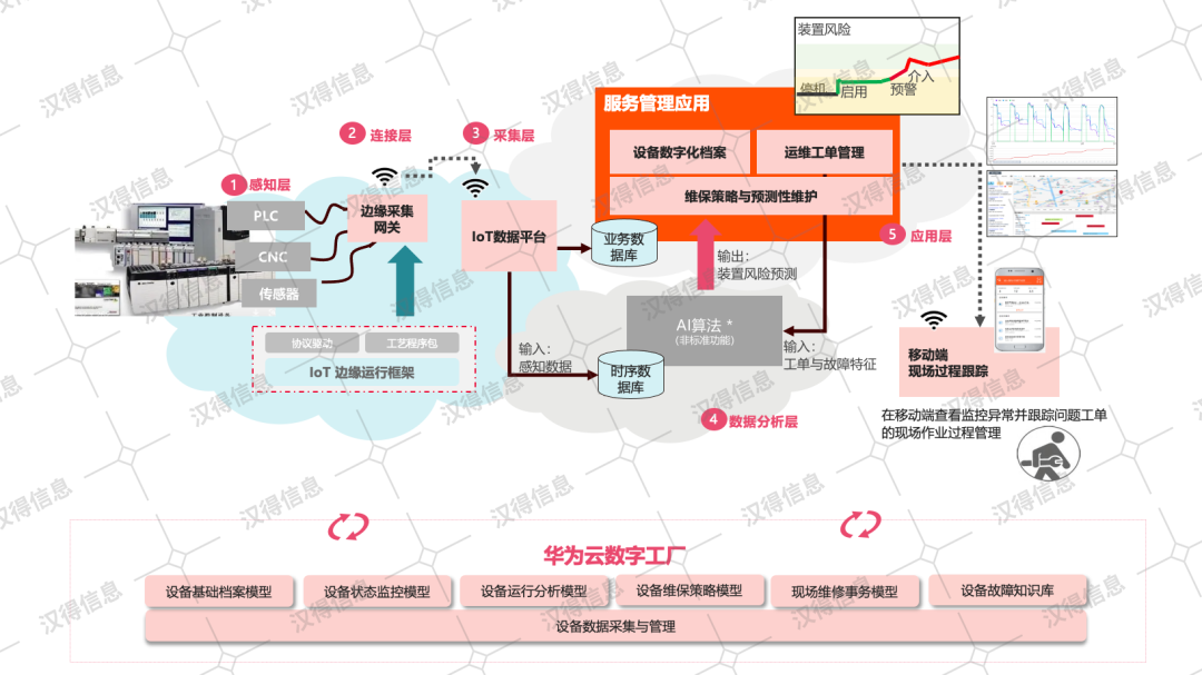会上,刘刚先生还着重介绍了双方合作推出的数字工厂解决方案,该方案借助华为云IoT平台,并结合汉得为中大型制造企业数字化转型服务过程中所积累的大量行业KnowHow,构建面向制造业中小企业的系列化应用,包括智能设备运维应用、产业链协同管理应用和制造协同管理应用等,显著提升了企业的服务效率和业务协同效率,为企业数字化转型提供有力支持。