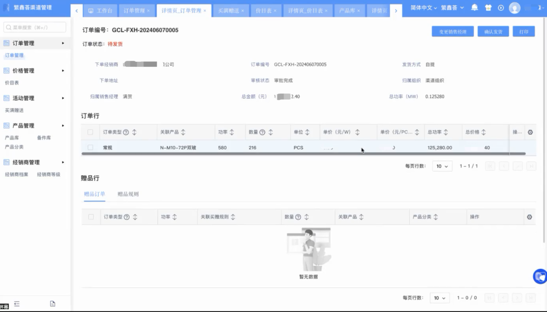 在订单处理中,实现了基于价格政策和促销政策的智能逻辑,这些逻辑能够自动判断并生成符合条件的赠品行。这一功能能够大大提升订单处理的效率和准确性,确保客户享受到应有的优惠和赠品。