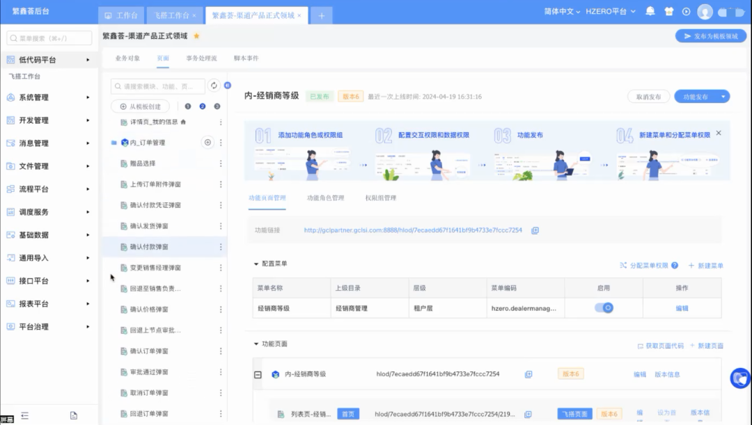 订单管理作为本次项目的核心且复杂环节,涵盖多达10余个页面。得益于低代码配置的高效性,成功实现这一部分的快速搭建与部署。