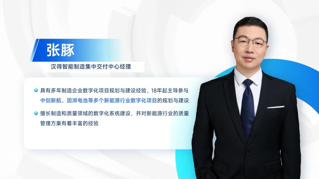 欢迎来到“数字劲动力,智造塑未来”汉得智造访谈第二期。今天我们邀请到的嘉宾是来自汉得智能制造事业部集中交付中心经理张豚。本期我们将与大家一起聊聊关于锂电池企业在质量管控中遇到的难点及解决方案。