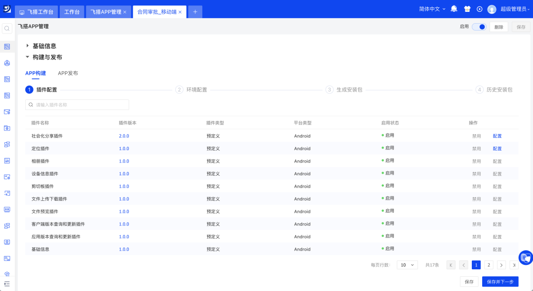 - 飞搭APP打包升级及应用优化,增强移动配置能力:飞搭APP支持在线打包及移动应用持续增强,新增上架新要求的相关配置;移动附件新增预览功能等;
