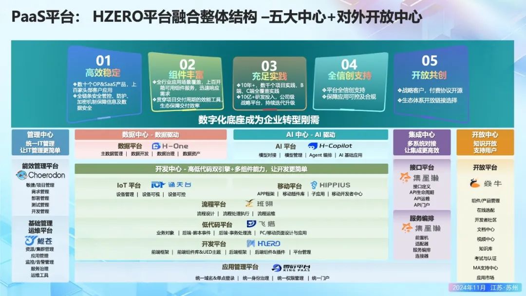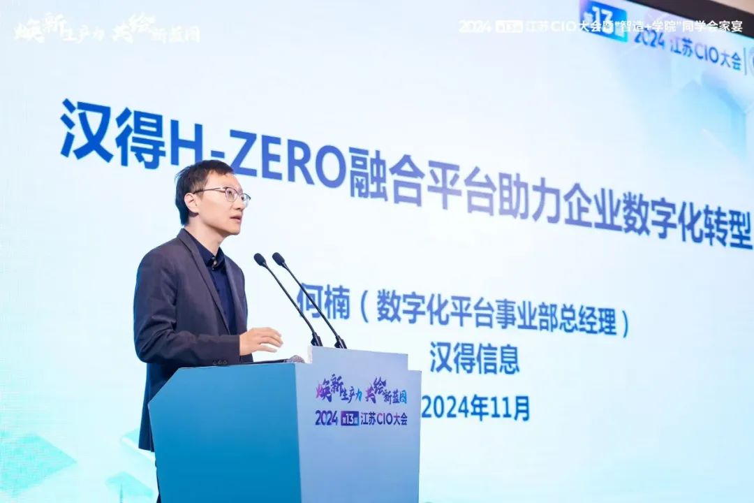11月9日,2024江苏 CIO 大会(第13届)暨“智造+学院”同学会家宴在苏州工业园区盛大召开!本届 CIO 大会由江苏省企业信息化协会、苏州市工业互联网产业联盟、江苏省首席信息官联盟主办,汉得、赛兴数字科技研究院、智造+学院、IT 人俱乐部等共同承办,近30家生态伙伴提供大会支持。本次大会以“焕新生产力 共绘新蓝图”为主题,以大会+论坛形式,围绕新质生产力、数智赋能高端装备、医药医疗、中企出海等主题举行了27场主题分享,江苏全省 CIO 的前沿思想在此碰撞,创新灵感在此共享,优秀经验在此交流!汉得作为本次大会独家冠名企业及国内领先的企业数字化综合服务商受邀参会。助力企业数字化转型H-ZERO▲ 汉得数字化平台事业部总经理何楠先生会上,汉得数字化平台事业部总经理何楠先生发表了题为《汉得 H-ZERO 融合平台助力企业数字化转型》的专题演讲,向参会人员分享了汉得多年来在助力企业数字化转型过程中所积累的宝贵经验。何楠先生表示,当前在经过多年的信息化及数字化建设,企业普遍存在大量碎片化的信息系统,各种信息化技术自成体系,表现为业务 IT、IT 与 IT、IT 与技术之间存在大量断点,每年仍有大量新增的信息化投资,如何确保 IT 投资对准业务数字化目标、有效支撑战略,减少重复建设,存在挑战。在面对企业数字化体系高度复杂及大量碎片化的转型现状时,汉得能够以 H-ZERO 平台打造架构稳定+平台敏捷的数字化转型支撑体系;以工具软件+应用软件构成产品供应体系;以系统实施+定制开发+规划咨询+运维支持形成服务供应体系,针对中国企业全球化不同阶段、不同场景下的需求,提供全面的解决方案!▲ H-ZERO PaaS平台体系汉得H-ZERO企业级PaaS平台汉得 H-ZERO 企业级 PaaS 平台,作为汉得所有事业部和子公司应用产品的技术底座,可满足大型企业的严苛需求,具备高可扩展性、高可用性和高安全性,能够应对超大型企业的复杂业务需求。经过6年的发展,H-ZERO PaaS 平台已经在1000多个中大型客户实战项目中得到验证,拥有丰富的组件库和高效的开发插件,还积累了大量开箱即用的通用组件,可大幅提升开发和运营效率。其灵活的集成能力和全球化支持,确保平台能够无缝对接各种业务系统。这些特性使得 H-ZERO PaaS 平台,非常适用于帮助大型企业实现数字化转型和持续创新。同时,H-ZERO PaaS 平台也是汉得长期的重点发展战略。汉得拥有完善的服务体系和丰富的实践经验,通过与客户的紧密合作、持续研发,保障客户的技术底座不断更新、与时俱进。数智赋能中企出海全球发展企业数字化战略与平台建设方案▲ 汉得 Global 事业群副总经理蒋涛先生同时在大会「数智赋能中企出海全球发展」分论坛上,汉得 Global 事业群副总经理蒋涛先生还受邀进行了题为《出海企业数字化战略与平台建设方案》的内容分享。在谈及中国企业出海这一话题时,蒋涛先生表示,当前整个世界正在剧烈的变化,从 VUCA 到 BANI,体现大家对不确定性的焦虑。从宏观看,中国企业全球化的进程仍在加速中。从微观看,中国企业在全球化的过程中正在调整自身的战略,越来越关注业务创新、柔性经营、绿色可持续以及安全合规。中国企业需要构建风险可控、业务引导、技术牵引的全球化数字战略,以实现企业全球化的战略目标。面对中国企业重新构建自上而下的全球化战略,汉得能够通过分层的数字化平台支撑全球化能力构建,以业务规划、数字化设计、项目落地打造中企全球化“全球交付模型”助力企业出海扬帆全球发展!今年《政府工作报告》着重强调推动现代产业体系建设,大力加快新质生产力发展的要求,可以预见的是数字化能力将进一步成为企业乃至行业的核心竞争力。我们相信,面对新时代、新征程、新蓝图、新使命,本次大会中关于如何以数据驱动创新,充分激发干行百业的无限潜能的独到见解与前瞻思考,将有助于为企业在数字经济浪潮中明晰方向,助力其实现转型升级与可持续发展!汉得作为企业数字化综合服务商,始终致力于成为连接企业管理与数字化技术的桥梁。我们期待未来能够与更多企业携手并进,深入探索企业数字化发展的更多可能性!