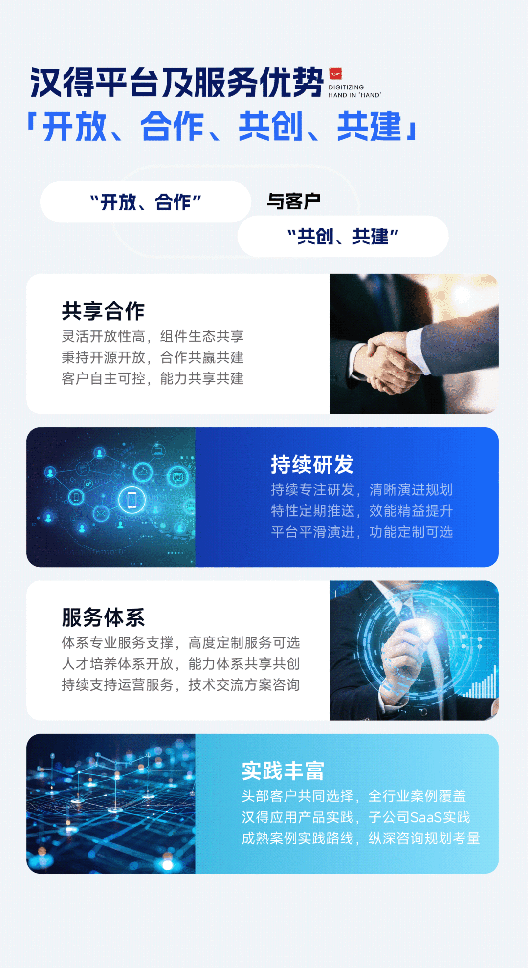 汉得作为企业数字化综合服务商,始终致力于成为连接企业管理与数字化技术的桥梁。我们期待未来能够与更多企业携手并进,深入探索企业数字化发展的更多可能性!