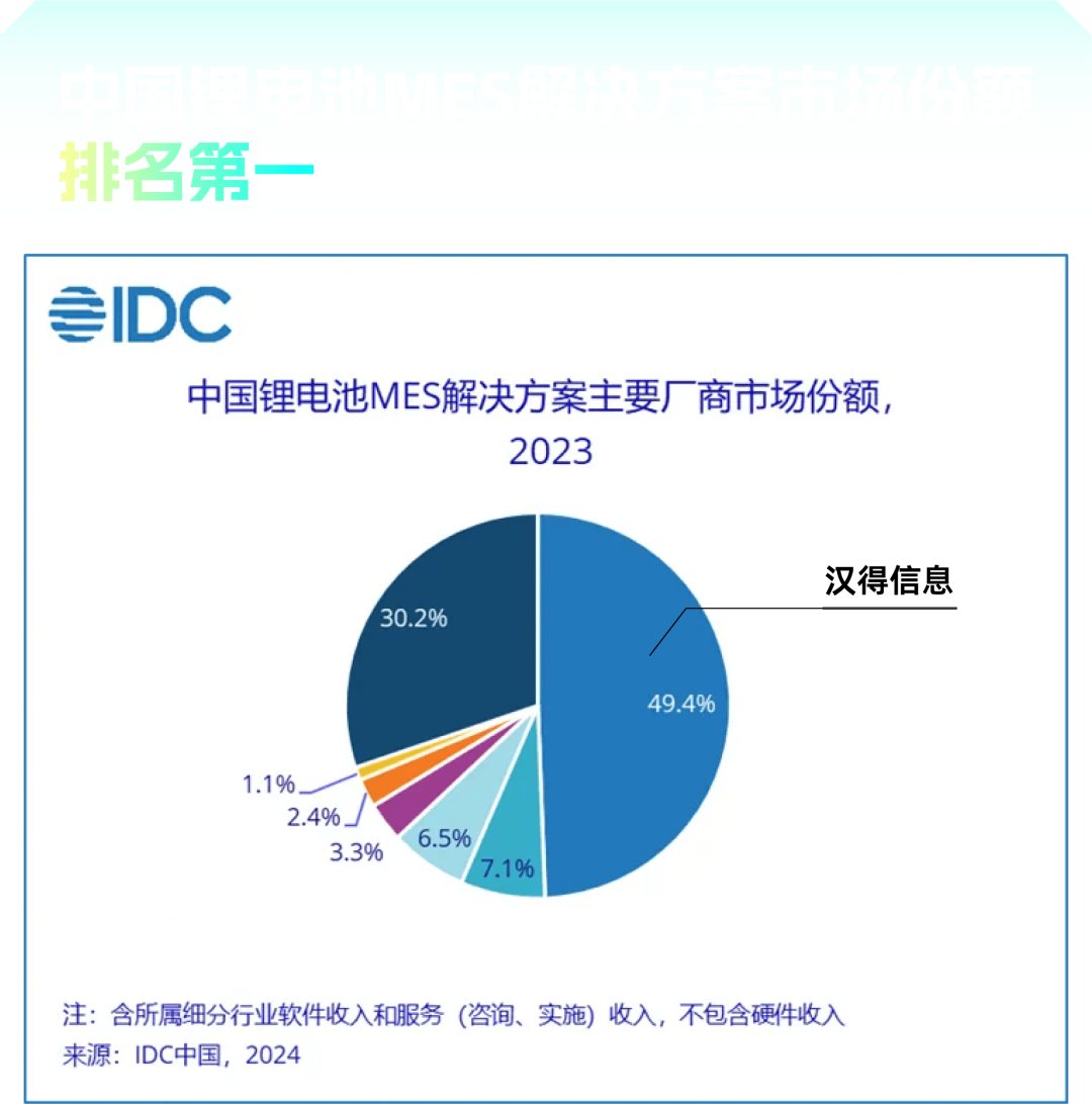 近日,多份权威市场研究报告发布,汉得在工业管理软件领域继续保持领先优势。 据中国科学院《互联网周刊》(CIW)联合德本咨询(DBC)、中国社会科学院信息化研究中心(CIS)联合发布的“2024工业软件企业TOP50”榜单显示,汉得综合排名继续上升,同时蝉联“工业管理软件”细分领域第一。 据《IDC中国制造业MES市场分析及厂商份额,2023:行业聚焦,AI赋能》数据显示,汉得在锂电池MES领域市场份额扩张至49.4%,遥遥领先,连续两年稳居市场份额第一!同时汉得在中国制造业整体及新能源/汽车整车/零部件/家电等众多细分行业市场份额名列前茅。 据《IDC中国供应链计划及APS市场份额,2023:未来可期》数据显示,当前中国供应链计划以及APS领域市场格局尚未固化,汉得连续两年以近6%的市场份额稳居中国厂商前列,与国际巨头逐渐接近。 汉得作为中国工业管理软件的领军企业之一,始终聚焦中国制造业的关键痛点,持续把供应链计划、APS,以及制造运营系统等核心工业管理软件作为重点发展方向。 汉得坚持行业深耕,在新能源领域持续挖掘,通过产品和技术技术积累形成了明显的行业护城河。2023年汉得工业软件业务,依然保持强劲的增长势头。 在供应链计划及APS领域,汉得产品能力不断发展,客户数量不断增加;MES领域,汉得在继续保持优势行业领先地位的同时,行业触角不断延展,与大量新兴战略产业的头部企业建立了良好的合作关系,为后续的持续高速发展奠定了坚实的基础。 作为中国信创发展的中坚力量,汉得始终坚持从底层技术平台,到制造业全领域应用产品的自主创新。经过多年的积累,以汉得H-ZERO技术平台为基础的制造业端到端产品和解决方案,已经展现出明显的竞争优势,能够为中国以及全球的制造型企业,提供长期可靠的“中国”方案。 随着人工智能技术的突飞猛进,汉得始终站在推动AI赋能产业的最前沿。结合汉得H-Copilot融合AIGC平台以及丰富的产品API,大量应用于具体场景的智能助手,正在汉得客户中生根发芽。 依托近30年服务中国头部制造业客户的经验,汉得始终坚持从供应链视角出发,思考如何帮助中国制造企业构建核心竞争力,形成了以供应链计划、物流、制造、质量、供应商管理为核心的覆盖全价值链的产品和服务能力。 在当前全球化2.0时代,汉得致力于通过咨询、产品、服务三位一体的方式,“以大物流小制造”的理念,以及汉得全球化的服务能力,帮助中国制造企业重构全球制造网络,在VUCA时代塑造全球竞争力。