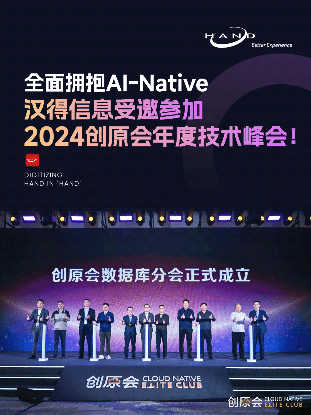 汉得信息受邀作为9家共创成员单位之一,参加《AI Native 技术与架构白皮书》联合编写和评审,作为“创原会数据库分会”创始会员参加“创原会数据库分会”成立仪式。