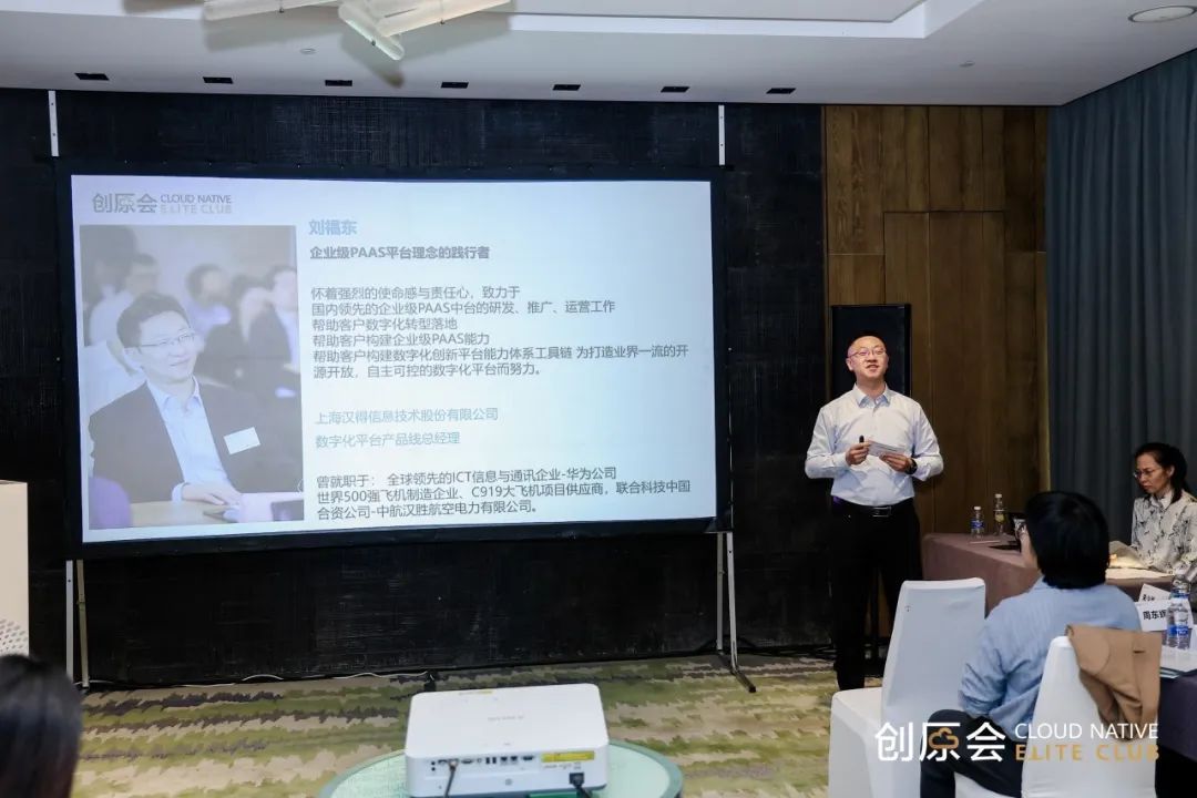 下午分论坛,汉得信息数字化平台产品线总经理刘福东受邀主持“如何加速应用智能化研发落地,重塑现代化企业?”为主题的圆桌会议。
