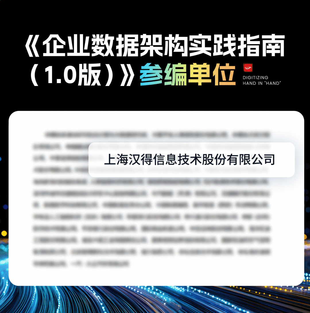 未来,汉得将持续探索大数据技术标准的新高度,推动大数据与实体经济的深度融合,为构建更加高效、智能、规范的数据架构体系贡献力量。同时,汉得也希望能够携手更多企业驾驭数据的力量,加速数字化转型步伐,开创数据治理的新篇章!