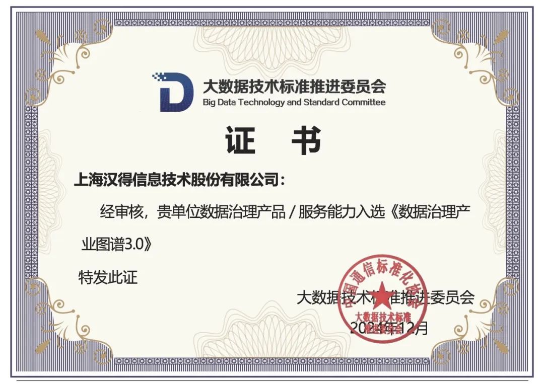 近日,中国通信标准化协会大数据技术标准推进委员会,在北京成功举办以“数据重塑价值 智能链接未来”为主题的“2024数据资产管理大会”。主论坛期间正式发布《数据治理产业图谱3.0》,汉得凭借在数据治理领域的强悍实力入选,这也是汉得连续三年入选该系列图谱!《数据治理产业图谱3.0》由中国通信标准化协会大数据技术标准推进委员会(CCSA TC601)编制,旨在梳理数据治理相关产品及服务的市场现状,洞察数据产业发展现状及未来发展趋势。图谱的发布,不仅为行业提供权威参考,更为数据治理领域的服务商们,搭建了一个交流与展示的平台。本次图谱编制工作深入剖析各企业特性,了解企业能力与业务模式。图谱共收集111家典型服务商、72项服务、150余项产品,覆盖金融、政务、通信、能源、制造、医疗、教育、交通等10余个行业,梳理了产业发展新现状。同时建立全新的服务商“特征”画像,通过新的服务商画像模型,将服务商特征差异用四个维度进行衡量,包括服务商类型、产品类型、服务类型,以及行业类型。▲图片来源:2024数据资产管理大会现场分享PPT连续三年入选图谱,见证了汉得在数据治理领域的深耕细作。从最初的数据治理产品探索,到如今的全方位服务提供,汉得始终坚持以用户需求为导向,不断创新与优化。汉得的数据治理产品不仅具备高度的一体化程度,还注重定制化服务,能够根据不同行业的特点,为用户提供贴合实际需求的解决方案。在技术创新方面,汉得紧跟时代步伐,积极引入人工智能、大模型等前沿技术,为数据治理工作注入了新的活力。这些技术的应用,不仅提高了数据治理的效率与准确性,更为用户带来了前所未有的智能化体验。值得一提的是,汉得在服务方面也下足功夫。我们深知,数据治理并非一蹴而就,而是需要持续的服务与支持。因此,汉得组建了一支专业的咨询团队,致力于为用户提供全方位、一站式的服务。无论是前期的咨询规划,还是后期的实施运维,都能够为用户提供专业、及时、贴心的服务。连续三年入选《数据治理产业图谱3.0》,是对汉得过去努力的肯定,更是对未来持续创新的激励。2025年是“十四五”数字经济规划收官的关键之年,也是数字中国建设全面提速的重要时期。汉得将依托其深厚的技术底蕴和丰富的行业经验,与更多合作伙伴携手并进。继续秉承“以用户为中心,以创新为驱动”的理念,不断探索数据治理的新领域、新技术、新应用!我们相信,在未来的日子里,汉得定能为用户带来更加优质、高效、智能的数据治理解决方案,共同推动数据产业的繁荣发展!H-ONE汉得融合数据平台汉得 H-ONE 融合数据平台,引领企业数字化转型的“大国重器”,助力企业轻松解决数据存储计算,全方位数据治理,数字“黄金资产”-主数据的标准化、规范化管理,实现数据资产智能化运营,为企业构筑起完整而创新的数据要素生态。H-ONE 不仅是一个体系化的数据平台,更是企业数据要素价值的释放者,为您开启数据要素之旅,实现业务的全面升级,激发创新能量,打造数字化成功的新篇章!H-ONE 融合数据平台包含四大一级平台,包括基础架构 Hadoop 发行版 HDH 、数据服务平台 HDSP 、主数据管理平台 HMDP 、数据运营平台 HDOP 。八大二级平台,数据开发平台 InsightStudio、流处理平台 InsightStreaming、机器学习平台 InsightML、数据填报平台 InsightFill、数据治理平台 InsightGovern、数据资产平台 InsightAsset、数据服务平台 InsightService 、洞见智数 BI 平台 InsightV 。▲ H-ONE 融合数据平台架构01汉得 Hadoop 发行版 HDHHDH 是汉得孵化的一款企业级分布式大数据平台,源于 Hadoop ,高于 Hadoop 。结合十余年的技术沉淀和项目上的实践经验,采用先进的技术架构,汉得成功孵化出了新一代企业级分布式大数据平台 HDH ,帮助企业更好地保障数据的安全性和隐私性,为企业提供更优质的服务,协助企业更好地管理和运维数据集群,更好地满足企业数据底座建设需求,使得企业能够以更低成本的方式持续使用大数据平台。▲ HDH 产品功能架构02汉得数据服务平台 HDSP汉得数据服务平台 HDSP ,提供数据全生命周期管理一站式服务,整合企业内外部业务数据、半结构化与非结构化数据,方便企业快速挖掘数据价值,对内外提供数据应用与服务能力,助力企业快速搭建自己的数据中台,协助企业合力打造数据价值链生态闭环,帮助企业实现降本增效。HDSP 包含数据采集、数据开发、数据治理、数据资产管理等全套数据中台建设组件,以及数据填报子产品 InsightFill 和洞见智数 BI 子产品 InsightV 洞见。▲ HDSP 产品功能架构03汉得主数据平台 HMDP汉得主数据平台 HMDP ,是基于 H-ZERO 微服务架构平台,由多个应用组件通力构成,是一款面向企业灵活的、全面的、智能的综合主数据管理平台。为企业各类主数据标准、数据建模、数据全生命周期管理、数据质量校验、数据合并、数据关系、流程审核、数据集成等提供一体化平台化支撑,确保企业主数据的及时性、完整性、有效性、准确性、一致性,持续提升数据质量和主数据应用能力。▲ HMDP 产品功能架构04汉得数据运营平台 HDOP汉得数据运营平台 HDOP ,打破组织的壁垒,拉通跨域数据,沉淀行业数据模型,提供端到端开箱即用应用场景,通过数据循环实现供应链协同、产销协同、业财协同、多组织协同、产业链协同。▲ HDOP 产品功能