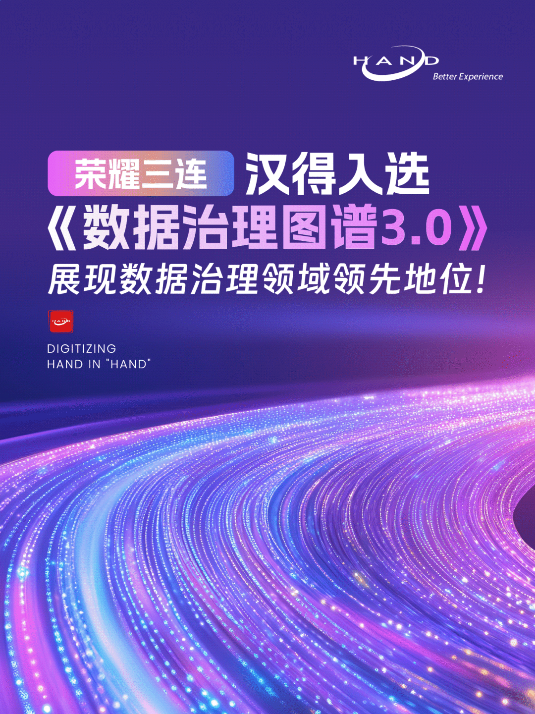连续三年入选《数据治理产业图谱3.0》,是对汉得过去努力的肯定,更是对未来持续创新的激励。