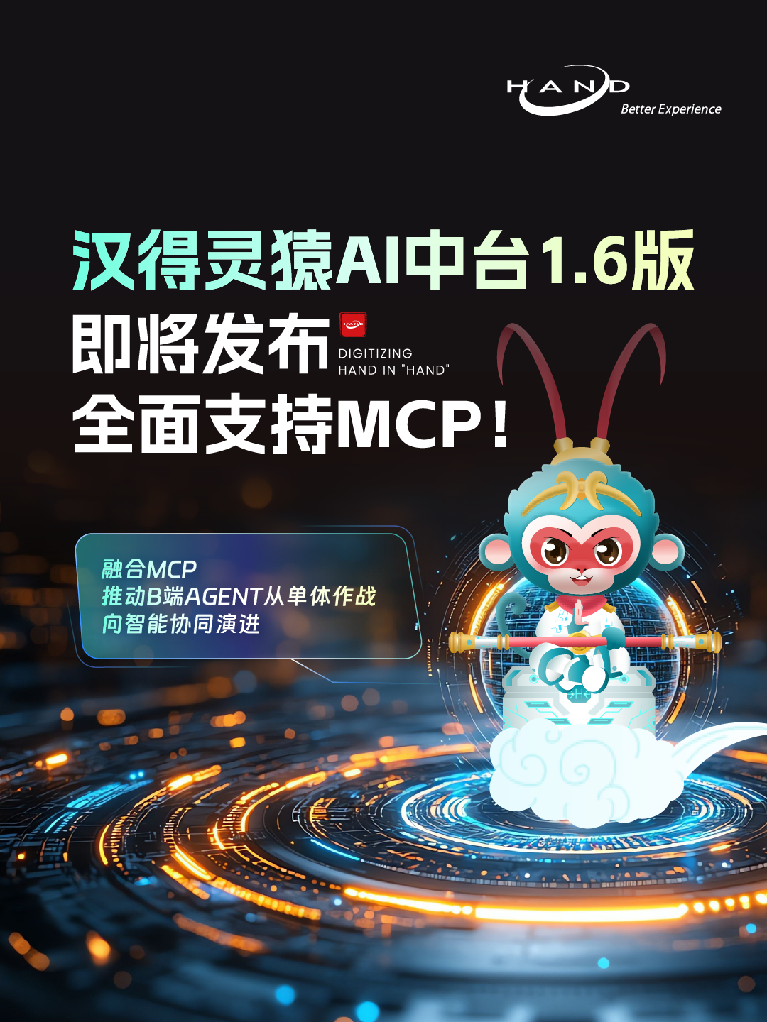 在刚刚落幕的2025汉得用户大会上,汉得已正式发布B端AI应用产品/服务系列【得·灵】。这一系列包括三大产品系列+一大服务系列:“灵猿”大圣AI中台系列、“灵手”业务智能体系列、“灵睿”垂直模型系列,以及“灵策”配套服务系列,全面支撑企业构建AI能力体系及智能化升级! MCP特别适用于企业级AI应用,能帮助Agent智能体快速对接ERP、CRM、OA等业务系统,实现复杂流程的自动和智能化。 它是Agent的助推器,帮助Agent打破工具孤岛、加速流程自动化、提升Agent灵活性、增强用户的交互体验。 这种设计方便Agent能够在不同系统间复用系统能力进行流转、协作,推动企业级应用从 “功能孤岛” 向 “智能协同” 演进,加速落地AI应用“最后一公里”。 全面支持MCP 汉得灵猿AI中台1.6版 汉得计划在5月底发布灵猿AI中台1.6版,全面支持MCP!核心功能如下: 企业MCP插件市场 内置一些适合企业应用的插件,支持自定义新增插件,提供远程Server对接、本地Server安装/对接两种模式,以支持不同场景需求 << 滑动查看下一张图片 >> 支持配置MCP的企业认证映射,可多用户共用插件并设置个人认证信息,以支持在应用个人权限的基础上调用MCP能力,规避越权访问数据、越权同系统交互等 << 滑动查看下一张图片 >> Agent编排中应用MCP工具 支持输入交互指令进行调用,可自动识别指令中的各关键信息,转为Tool所需要的参数值进行调用,简化接口调用模式 支持直接调用模式,即直接传入固定值、动态变量给Tool的参数进行接口调用,快速应用MCP能力 AutoAgent节点应用MCP工具 可配置应用多个MCP的多个Tool,支持动态灵活场景 内置用AI模型智能找Tool,如应用FunctionCall、自定义Prompt模式等。可根据用户输入智能去找最优的MCP Tool和做执行 H-ZERO接口平台 支持直接发布MCP Server 接口平台中可新建多个MCP Server,可给不同MCP Server分配一批内部接口、外部接口,最终发布多个接口到MCP Server 使用接口平台发布的MCP Server,Agent可静态/动态智能调用企业各个业务系统的接口,并可复用接口权限(支持用户级接口权限),实现Agent快速对接企业流程 下一步规划: 监控与运维 增加MCP插件的监控、运维功能,可监控MCP使用情况,根据使用记录、动态选择Tool的记录去选择下架MCP、调整MCP等,持续优化插件生态 扩展插件生态 提供更多内置MCP插件,覆盖更多企业级应用场景 生态对接 支持直接对接外部成熟MCP Server聚合市场,用导入方式简化插件维护流程,进一步降低企业使用门槛 Model Context Protocol(简称MCP),由Anthropic公司提出,是一种标准化的模型上下文协议。它通过统一的接口规范,解决了传统API集成中的碎片化(需为每个调用工具定制接口)问题,让AI模型能更简单地去对接调用外部工具、获取数据以及与服务交互。 MCP核心能力在于: 标准化协议 接口规范中包含了对上下文信息的标准化定义,例如数据格式、传输协议、Tool描述等,使得不同系统能够轻松理解和处理这些上下文信息 动态发现 MCP允许客户端动态发现可用工具、资源,并与工具交互,同时MCP会自动广播可用工具和资源信息给客户端,无需预设集成代码、配置。比如新对接MES系统的MCP Server会通知连接的AI工具新增“查询工单”工具 智能路由 AI模型可根据上下文(包括用户信息、语义化Tool描述等)自动选择最优的MCP的工具、识别参数进行执行。比如当用户询问 “我最新的MES工单情况” 时,MCP会自动识别需求,调用“查询工单”工具并展示查询结果 携手汉得,共铸硬核竞争力!