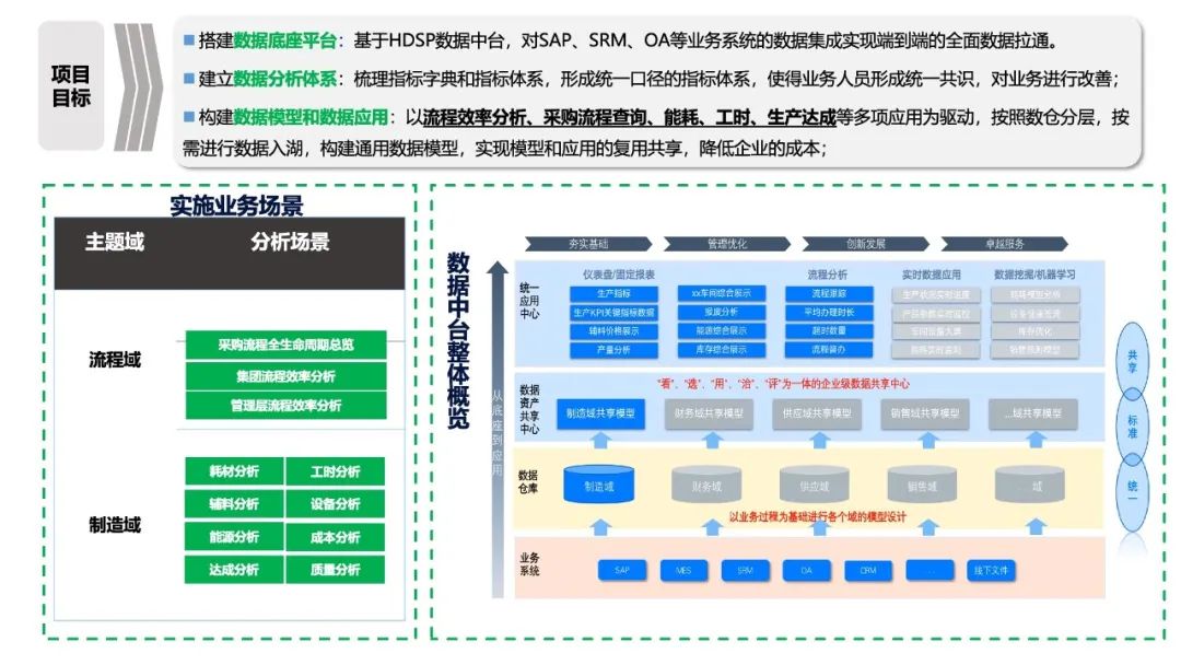 随着新能源行业的高速发展,动力电池企业面临的竞争日益激烈。如何通过数字化转型突破数据孤岛、优化生产管理、提升运营效率,成为企业构建核心竞争力的关键。 为此,某国内领先的高端电池正极材料制造企业携手汉得数据服务团队,通过端到端数据整合与智能分析,成功构建覆盖多基地、多业务的数据中台体系,实现流程效率提升23.2%、采购查询效率提升55.7%等显著成果,为电池行业的数字化转型树立新标杆! 客户痛点 数据孤岛与效率瓶颈 该企业业务覆盖全国多个基地,涉及回收、资源、材料三大板块。复杂的业务场景与多系统并行给企业带来巨大挑战: 数据孤岛严重 多系统(ERP、MES、SRM等)信息孤立,数据难以互通,影响整体决策和运营 流程效率低下 采购审批环节繁琐,审批流转慢,进度缺乏透明度,阻碍了快速响应和决策 管理缺乏抓手 生产能耗、工时等关键指标缺乏统一口径,无法精准优化 报表开发低效 传统报表开发周期长,效率低下,系统响应慢 为解决上述痛点,满足高速发展的需求,该电池材料龙头企业选择携手汉得,期望实现统一数据门户、打通数据孤岛、建设指标体系、推进数据管理、辅助决策支持等五大目标建设。 解决方案 从数据整合到智能决策 项目团队以“数据驱动业务”为核心,分三步实现突破: 端到端数据拉通 · 集成OA、SRM、SAP等系统数据,打通采购全生命周期(申请→询价→订单→入库),实现一站式进度查询,效率提升55.7% · 构建跨基地数据仓库,通过分层建模(ODS→DWD→DWS)提升数据稳定性和复用性,开发效率提升66% 构建统一指标体系 · 梳理200+核心指标,覆盖流程效率、生产达成、能耗分析等场景 · 制定指标字典与总线矩阵,统一业务口径,消除数据歧义 智能化报表与监控体系 · 开发OA流程效率看板,实时监控审批节点,定位“卡点”环节,推动效率提升23.2% ·打造窑炉能耗分析、工时产出统计等生产报表,助力降本4.2%以上 项目成果&价值 数据赋能业务价值 流程效率飞跃 搭建HDSP数据中台后,将多系统数据全面拉通,使采购全链路透明化,采购异常问题响应速度提升80.2% 生产管理优化 通过建立制造模块成本分析体系,精准定位成本异常工序,窑炉空耗成本降低4.5%,工时利用率提升5% 决策支持升级 基于统一数据来源及核心业务分析场景,管理层通过统一看板实时掌握多基地全面运营情况,便捷直观的发现异常,使得决策效率提升50% 开发成本节约 统一的数据底座、分析体系、模型及应用,合理的分层建模,既完成了指标口径的统一,又减少了大量报表的重复开发,使得报表交付周期缩短66% 行业思考 数据中台如何破局电池制造难题? 该电池材料龙头企业的实践为电池行业提供了三大经验: ◈ 打破数据孤岛:通过多系统集成,实现跨基地、跨业务的数据协同 ◈ 标准化管理:统一指标口径,构建可复用的数据模型,降低长期运维成本 ◈ 场景化应用:从流程效率到生产能耗,聚焦业务痛点设计数据产品,确保价值落地 未来展望 从“数据支撑”到“数据驱动” 下一步,项目团队将与该企业持续深化合作,逐步推进: ◈ 预测分析:基于历史数据构建产能预测、设备故障预警模型,助力提前预判潜在风险 ◈ 数据治理:持续优化数据质量与安全性,确保数据在全生命周期中的完整性和可信度 ◈ 全员赋能:通过自助BI工具的普及,提升业务部门的数据分析能力,赋能更多决策 专注数据分析领域 汉得数据服务团队 汉得数据服务团队是一支专注于数据分析领域的专业团队,长期致力于帮助企业挖掘数据价值、提升运营效率与决策能力。 团队由经验丰富的业务和技术顾问及各领域的专家共同组成,具备扎实的业务方案能力和系统落地能力;具备从战略规划到技术落地的全流程服务能力;具有经营分析、消费者分析、管理报表、绩效管理等多类场景分析方案;能够为不同行业客户提供一体化的数据分析解决方案。 依托多年数据项目实践经验,团队逐步构建出一套覆盖咨询、工具、业务、数据、技术、产品以及AI在内的全栈能力体系: ✅ 咨询能力 提供整体的数据咨询、规划、路标报告建议等 ✅ 工具能力 熟练使用各类数据分析、BI和报表工具的能力,如Excel、Power BI、Tableau、洞见InsightV、永洪、帆软、观远、FR/FBI、BIEE/OAC、BO/SAC、SQL、Python、R、HDSP等 ✅ 业务能力 企业管理理论与方法,如战略管理模型、运营管理模型、职能管理专业等;覆盖金融、制造、互联网、服务、快销、零售、公用事业、医疗、贸易、电信、高科技等不同垂直行业,包括HR、供应链、营销、财务、制造、资产、IT运营等 ✅ 数据能力 数据管理体系:数据治理、数据资产,如数据血缘与元数据、数据标准与质量等;数据分析体系:数据分析思路,如5w2h、MECE等;数据分析方法,如回归、分类、聚类、时序、关联等;主数据实施等 ✅ 技术能力 (结构化/半结构化/非结构化)数据采集/存储/计算/查询/服务封装、ETL、调度、监控、算法库等 ✅ 产品能力 H-ONE融合数据平台, 从底层基础计算存储到数据全生命周期管理、主数据管理到整体数字化运营全套体系化产品 ✅ AIGC能力 具备将生成式AI技术融入数据分析、报告自动撰写、智能问答与洞察输出等业务流程的能力,探索AI与BI融合的创新模式,助力企业实现智能化分析与决策 如果您也希望—— ✅ 实现企业整体化分析,实现跨系统高效分析,打破数据