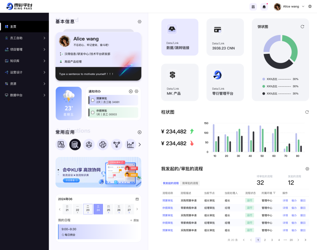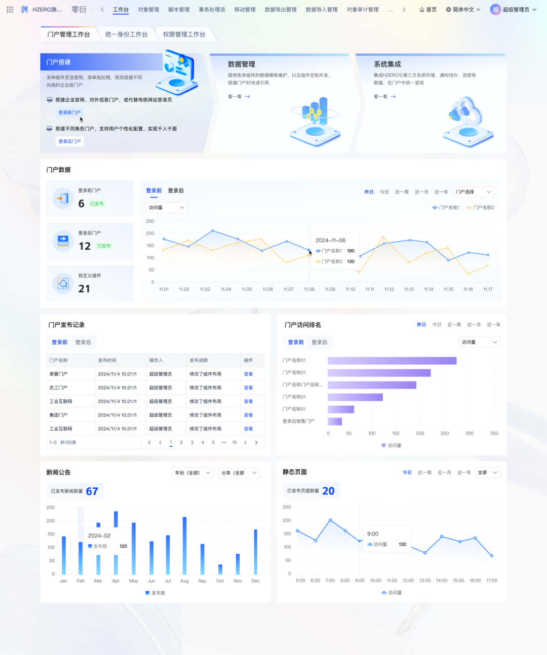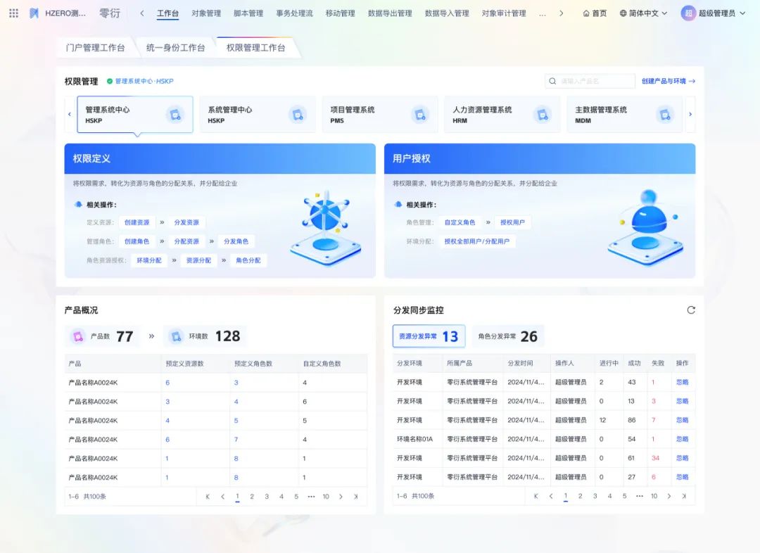 零衍系统管理平台(KINGPAAS,以下简称“零衍”)是一款以H-ZERO平台为底座,统一管理企业、用户、员工等身份信息管理、统一单点身份认证、统一平台主数据管理、统一域名管理、统一权限管理、支持登录页和门户自定义配置、支持多种单点协议的企业级应用产品。 本次发布主要从以下六个方面进行产品功能的升级和优化,新增自定义权限管理模块、提供用户注册准入功能、对门户细节进行优化提升、预置产品工作台等,旨在全方位增强产品核心竞争力,满足企业复杂的业务场景。 自定义权限管理:支持创建多套权限模版,配置资源类型以及之间的关联关系。提供多种方式维护资源数据,优化大数据量分发效率,轻松应对多权限模型的业务系统的管理要求 统一用户注册:提供统一的注册入口,支持管理员动态配置注册页面字段和功能,支持注册字段个性化拓展等,为用户带来全新的注册体验 产品工作台:预置三套工作台,提供门户、身份和权限模块的数据统计,满足客户对多维度数据统计分析的需求 统一门户管理:优化门户多语言配置、对多个组件进行属性调整和补充,进一步提升零衍门户组件库的丰富度。新增两套门户模版,风格多样供用户选择,同时优化门户加载性能、自定义组件渲染性能等,全面提升门户模块的基础能力 系统管理功能增强:细化产品维度和系统维度的管理模式,新增用户编辑权限控制,便于管理员精准管理和运维产品系统信息 身份管理功能增强:对身份模块的相关功能,如用户、组织架构增加个性化拓展字段,支持配置定时JOB分发数据,进一步强化用户身份管理 本次发版内容亮点功能 维护自定义权限模版 支持创建多套自定义权限模版,动态配置资源类型、资源字段以及资源之间的关联关系。 预置H-ZERO开发平台标准权限管理模型和通用RBAC权限管理模型,方便用户直接使用或者在此基础上拓展。 << 滑动查看下一张图片 >> 产品使用自定义权限模版 产品使用自定义权限模版后,可在配置好的资源类型下维护资源数据,资源数据间的关联关系,以及跟用户/组织架构的分配关系。 支持将资源数据和资源关联关系分发至第三方业务系统内。 << 滑动查看下一张图片 >> H-ZERO权限快速导出导入 针对H-ZERO体系的目标系统,支持快速导出相关的资源数据,再一键导入零衍平台,便于数据初始化。 注册功能支持可配置 提供管理员配置页面,对注册入口是否开启、注册页面字段显示、注册是否审批、注册结果是否通知等功能进行动态化配置。 注册页面字段可拓展 对接用户表个性化字段,允许将用户表添加的个性化字段配置在注册页面,让用户在注册页面填写相关信息。 统一登录页/登录前门户增加注册入口 支持用户填写注册信息并提交,注册成功后即可登录平台。同时增加移动端适配,支持移动端注册功能。 预置多套不同业务场景的工作台,动态进行数据的汇总与报表展示,方便管理员决策分析 门户管理工作台 提供门户功能快速入口,统计门户类型数量、发布记录及访问排名等数据。 统一身份工作台 提供组织架构和安全认证相关功能的快速入口,统计风险账号、用户行为分析、数据分发监控等报表,全面提高系统安全性。 权限管理工作台 提供产品系统管理入口,支持管理员快速进行权限定义、用户授权等操作,统计分析产品系统数量以及分发监控等数据。 新增两套门户模版 进一步丰富零衍门户模版库的风格,给用户带来更多的选择。 ◈ 简洁风登录前门户 ◈ 商务风登录后门户 门户多语言配置优化 提供全局多语言默认值配置,同时支持对单个门户和所有组件字段进行多语言维护。 门户支持自定义灰度配置 支持清明等重大事件灰色遮罩,配置门户灰度值以及生效时间等。 支持创建共享菜单并授权权限管理和分配门户 即多套登录后门户使用同一个目录菜单,同时共享收藏功能,避免了管理员重复维护数据。 门户tab组件增加左侧导航栏样式 除顶部切换样式外,本次新增左侧切换样式,丰富了此类组件的使用场景。 此外我们还对登录前门户/登录后门户增加背景图,支持图片自适应,提高门户配置的灵活度;对登录卡片、自定义快速链接、页眉菜单等组件进行属性优化,补充字体布局等元素、进行大小屏适配,增强组件可用性;优化登录后门户加载性能、自定义组件和自定义页眉渲染性能...... 更多门户新功能期待您的探索! 新增系统管理功能 以系统环境为维度进行管理,同时支持对产品和系统按照用户/角色/组织架构授权,用户仅可查看有权限的产品和系统,便于细化管理和运维。 产品和系统增加使用场景字段 新建/编辑产品和系统时,支持勾选使用场景,根据使用场景显隐部分功能和字段,使页面更加简洁,方便用户操作,提升用户体验。 身份模块增加个性化字段拓展支持 用户表、组织/部门/岗位表、职务表均增加个性化可拓展字段。用户可根据实际需求添加字段,同时支持个性化字段的分发和导入导出。 支持配置定时JOB分发数据 组织架构和员工相关的数据支持配置定时JOB进行分发,减少了运维工作量,同时提升数据分发效率,最大程度保证数据一致性。 以上主要从六个方面介绍了零衍V1.4.0版本的产品新特性,更多功能细节可参阅开放平台文档或联系研发团队。未来我们将持续迭代新版本功能,期待与您的交流~ 1. 如果您想了解零衍更详细的功能