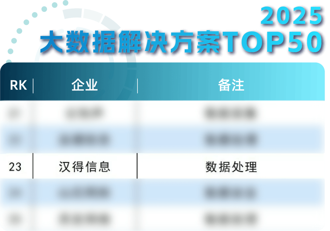 在数据洪流奔涌的数字化时代 驾驭数据的深度价值 已成为企业竞争的关键分水岭 构建完善的数据治理体系 是实现数据价值释放的核心路径 近日,由中国科学院《互联网周刊》联合 eNet 研究院、德本咨询等权威机构发布的“2025大数据解决方案TOP50”榜单正式揭晓,汉得凭借在数据治理核心环节——数据处理领域的领先技术与行业实践,强势登榜,与国内多家科技巨头同列前沿阵营,彰显国产大数据核心服务商的硬实力! 在榜单揭示的四大核心能力维度(采集、处理、存储、分析)中,汉得以“数据处理”的专注定位跻身强者之林。这恰恰体现汉得解决企业数据核心痛点的能力,这些能力正是有效数据治理落地的关键基础: 01 化繁为简,统一数据语言 解决什么? 企业数据往往来源众多、格式各异(如系统记录、表格、日志),如同散落各处的碎片信息,难以整合利用,严重阻碍数据治理中质量与一致性目标的实现 汉得做什么? 强大的数据处理能力,能够高效地清洗、整合、转换这些不同源头、不同格式的原始数据,将它们转化为统一、规范、高质量、可直接用于分析的“业务语言” 带来什么? 确保决策所依赖的数据基础是准确、一致且可靠的,消除“数据打架”的困扰,让各部门基于同一事实说话,这是构建可信数据资产、支撑数据标准与质量管理等治理环节的首要前提 02 加速洞察,让数据“活”起来 解决什么? 传统的数据处理方式可能导致分析结果滞后,无法满足实时业务决策的需求,也难以满足数据治理对时效性的要求 汉得做什么? 汉得不仅能够处理历史积累的海量数据(批量处理),更能实时处理源源不断产生的业务数据流(流式处理),让数据的价值在业务发生的当下就能被捕捉 带来什么? 极大缩短从数据产生到价值洞察的时间,支持企业进行更快速、更敏捷的业务响应和决策,抓住转瞬即逝的机遇或规避风险 汉得大数据解决方案的核心优势,在于将技术能力转化为实际的业务驱动力: 01 融合历史与实时,决策更全面 如何赋能业务 打破历史数据分析与实时业务监控之间的壁垒。既能深入挖掘过去积累的经验规律,又能即时感知当前的业务脉搏 带来什么? 为企业提供贯穿业务全周期的洞察支持,从长期的战略规划到日常的运营调度,都能基于更完整的信息做出更优决策 02 智能提升效率,释放数据潜力 如何赋能业务 将人工智能和机器学习深度融入数据处理环节,自动化完成复杂的模式识别、特征提炼和预测分析等原本需要大量人工和时间的任务 带来什么? 显著提升数据分析的效率和深度,更快地从数据中发现隐藏的规律、进行预测性分析,为业务创新(如精准营销、预测性维护、智能风控)提供强大引擎 03 弹性应对变化,成本更优化 如何赋能业务 采用先进的云原生架构,使得数据处理所需的计算资源能够根据业务量的波动(如促销高峰、月末结算)弹性调节 带来什么? 既保障业务高峰期的系统稳定性和性能,又避免了资源闲置浪费,实现IT基础设施投入的精细化管理与成本优化,这种弹性能力也是构建敏捷、可持续、高性价比数据治理体系的重要保障 此次登榜TOP50,是行业对汉得“用数据解决真问题”理念的再次认可,也是对以数据处理能力驱动数据治理价值实践的肯定。汉得在近30年的历程中,陪伴7000+客户成长与发展,始终致力于以创新技术,为企业个性化定制数据处理方案。 正如榜单所述:“大数据解决方案正从被动记录转向主动价值创造”,汉得将持续以“深度数据处理”为支点,夯实企业数据治理根基,推动企业从数据洞察到智能决策的飞跃。 让每一行数据,都能迸发出新的力量! 即刻携手汉得 激活全链路大数据解决方案 领跑业务增长新赛道