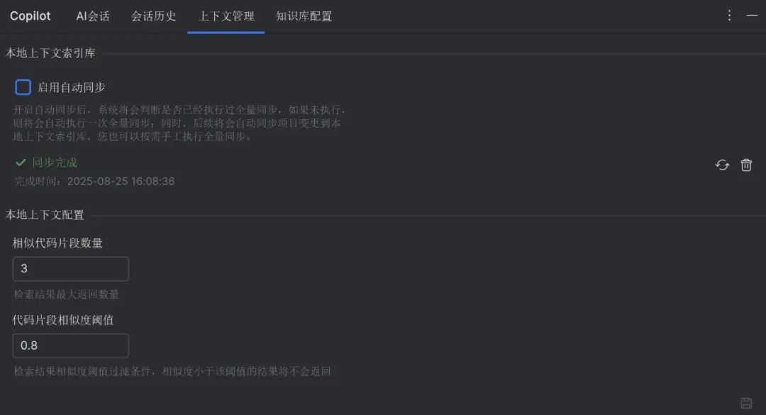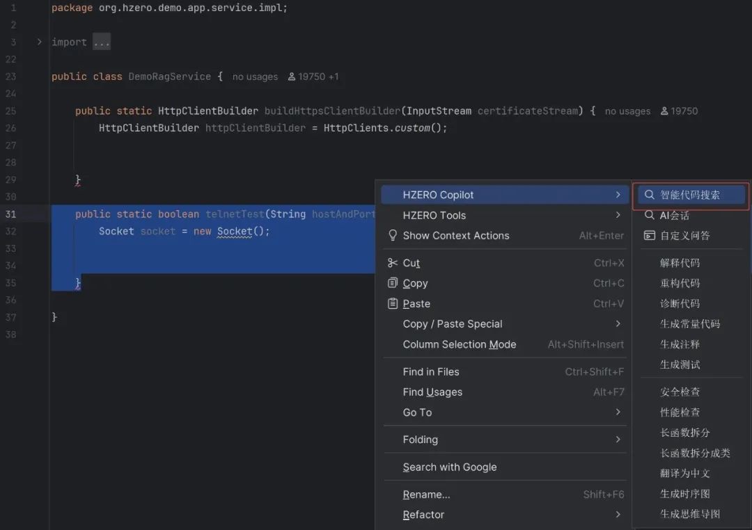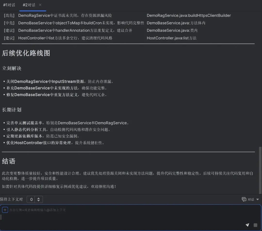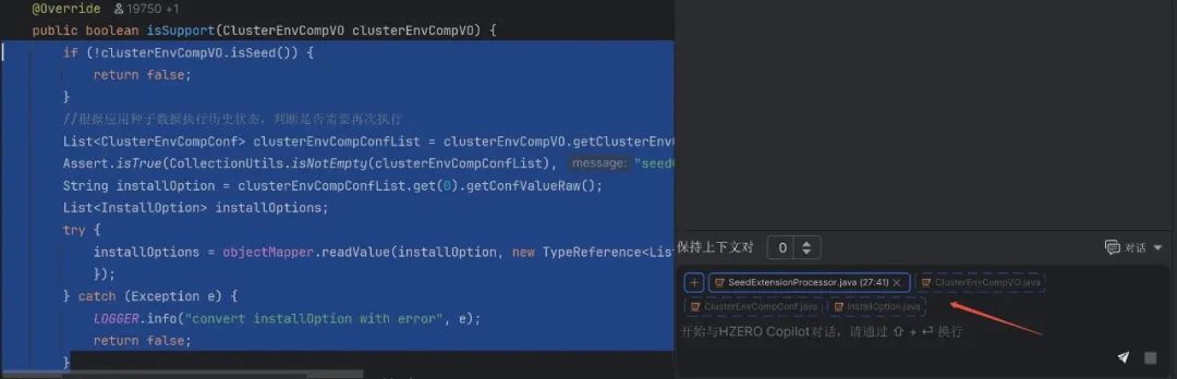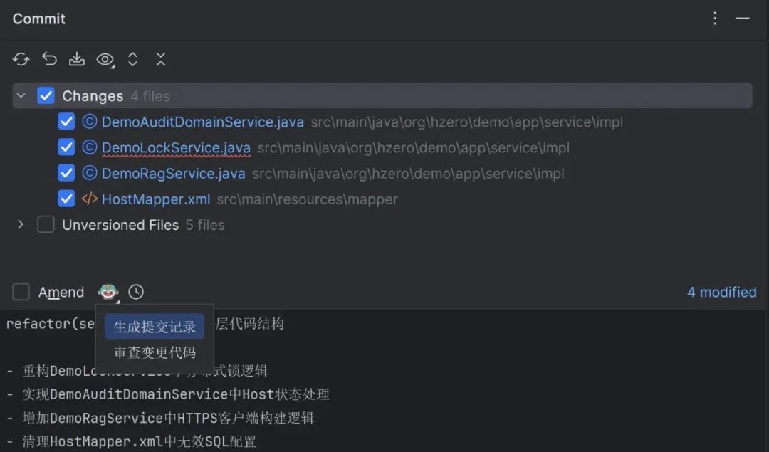 汉得企业级智能编码助手(中文名“飞码”,英文名“H-AI Coder”,以下简称“飞码”), 结合AI智能驱动与H-ZERO专属规则驱动,支持智能代码补全、代码对话问答、智能代码诊断、 知识问答、高质量H-ZERO相关脚手架代码生成等场景,同时支持企业级权限管控及可视化分析。旨在提供更加规范、高效的开发体验,提升用户开发效率与代码质量。 本次发布主要从以下三个方面进行了产品功能升级与优化: 更全面、更精准的上下文感知:智能代码问答新增多类型上下文选择及智能上下文感知与推荐能力;智能代码补全支持本地代码库自动检索增强,跨项目上下文感知能力显著增强 更智能、更高效的开发流程:新增基于本地代码变更的一键生成Commit Message、智能审查代码变更;支持智能代码搜索,包括代码搜代码、自然语言搜代码等 更稳定、更流畅的交互体验:持续优化产品性能与稳定性,为开发提供顺畅可靠的体验 智能代码问答 支持选择项目文件、文件夹、Git提交记录或当前文件变更等多种类型作为问答上下文 基于所选代码结构,自动分析并推荐关联上下文,彻底解决AI问答与项目脱节的问题,让每一次交互都精准高效 智能代码补全 本地代码索引库可将项目代码切片、向量化并安全存储,支持手动或自动增量同步,打造您专属的项目知识大脑 智能代码问答 可通过点击「+」按钮或输入「@」符号来快速唤起上下文选择,同时支持文件、文件夹、Git提交记录及Git Changes等多种上下文类型 已添加的上下文将会以标签形式直观呈现,清晰可见,同时也可在对话过程中直接指定问答主体 选中代码后,系统将会自动解析语法树并智能推荐相关上下文,操作方便快捷,轻松提升开发效率 智能代码补全 本地代码索引库构建 支持手动和自动两种模式,高效构建本地专属代码知识库。同步任务在后台运行,实时展示同步进度,不打扰正常开发流程 智能代码补全检索增强 支持从本地索引库中检索相似代码,大幅提升跨项目的上下文感知能力。用户还可自定义本地上下文相似代码片段的最大返回数量,以及检索结果的相似度阈值,实现更精准、高效的补全体验。参考如下示例案例: 参考项目中工具类定义:已预先构建到本地代码索引库,并随项目迭代以增量更新方式保持同步 示例项目中触发智能代码补全:飞码代码大模型参考本地索引库中相似代码,实现将入参hostAndPort拆分后复用相似代码逻辑片段 << 滑动查看下一张图片 >> 新版本将AI能力深度融入开发工作流,帮您自动化处理繁琐事务,让开发者专注核心创新: 智能提交记录生成 基于所选代码变更,一键生成清晰规范的Commit Message,让版本提交更专业 智能代码审查(Code Review) 针对所选代码变更,一键生成详细的代码审查报告,快速发现潜在缺陷、性能问题与安全风险,助力高效提升代码质量 智能代码搜索 在已索引的本地代码库中,支持使用自然语言或代码片段进行跨项目检索,快速定位相似逻辑,极大提升代码复用效率 智能提交记录生成 选中代码变更即可一键智能生成清晰规范的提交记录 智能代码审查 选中代码变更即可一键智能生成详细的代码审查报告,问题明确分级,快速发现潜在缺陷 智能代码搜索 选中代码后,右键即可快速触发跨项目代码搜索,搜索结果以清晰格式化方式展示,方便快速浏览与定位。同时,也支持通过自然语言描述来搜索代码,轻松找到所需业务逻辑,有效提升代码复用效率 << 滑动查看下一张图片 >> 本次更新包含多项底层优化,致力于为您提供更流畅、稳定的使用体验: 优化代码补全:提升整体交互性能及稳定性,尤其在内部类触发时补全效果更可靠 优化飞码侧边栏:加快初始化速度,增强稳定性 优化HDB Browser:数据库操作及表结构管理更稳定高效 知识库问答增强:新增展示AI思考过程,让问答更直观透明 IDEA全版本支持:兼容IDEA 2021.1至2025.2 ...... 以上内容主要从三大方面介绍了飞码V1.2.4的新特性。更多功能细节可参阅开放平台文档,或随时联系研发团队。未来我们将持续迭代,为您带来更多智能编程体验,期待与您交流! 💬 欢迎在评论区留言,一起探讨智能编程在您业务中的应用潜力~ 1. 如果您想了解飞码更详细的功能介绍和产品信息,欢迎查阅我们的产品文档 请在PC端打开 ➡️ 汉得焱牛开放平台 【文档>技术产品>汉得H-AI飞码智能编码助手】 2. 相关产品咨询或了解更多信息,欢迎联系我们 邮箱 ➡️ openhand@vip.hand-china.com 3. 试用飞码期间,若您有任何问题需要咨询,都可前往焱牛开放平台(open.hand-china.com)提反馈,或将疑问发往联系邮箱。我们有专业人员针对您的问题进行解决回复,技术精良的研发团队根据您的反馈进行应用优化。期待您的反馈,我们将用心对待每一份回应~ 携手汉得,共铸硬核竞争力!