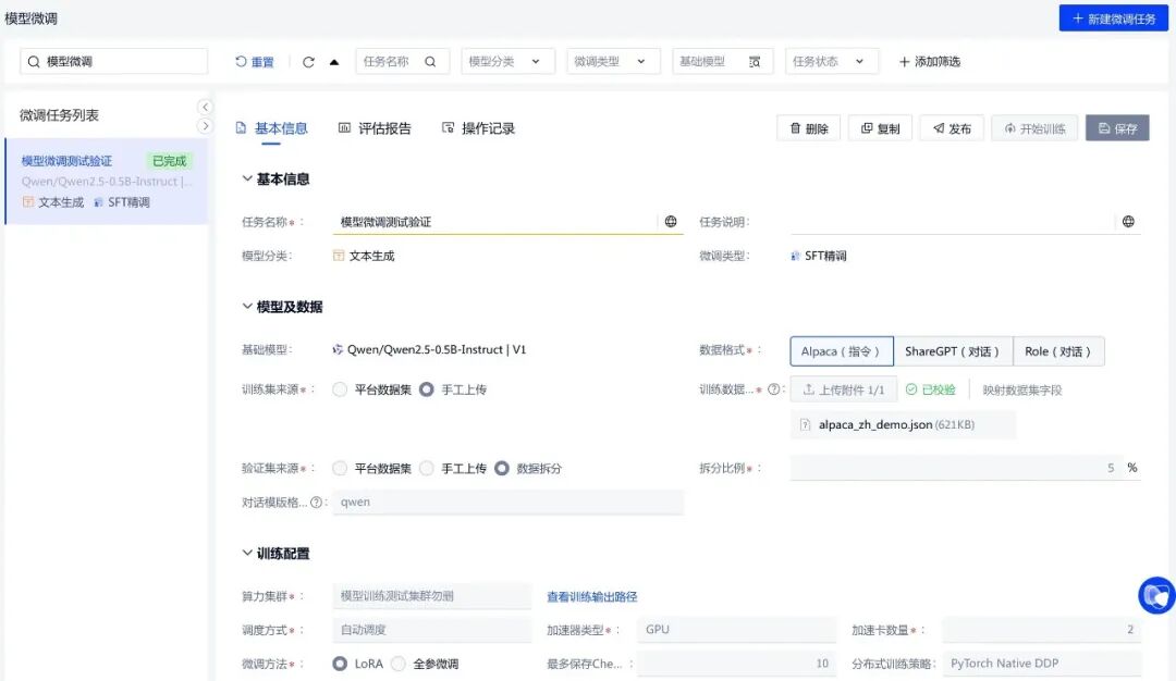 当大模型浪潮汹涌而至,企业纷纷开始思考——如何让大模型真正为业务赋能?如何在可控、安全、可持续的环境中高效落地? 我们很高兴宣布,经过多次迭代优化,灵炼大模型训练与管理平台迎来了官方第一个正式版本V0.9的发布!旨在让大模型不再“难用、难调、难落地”,助力构建企业自有的AI竞争力。欢迎各位前来体验。 本文将带您深入了解: 灵炼是什么:它如何帮助企业破解模型管理、训练与部署的难题 灵炼能做什么:它为哪些场景提供高效、便捷的一体化解决方案 一、灵炼产品介绍 灵炼是什么 灵炼是指汉得企业级大模型训练与管理平台(中文名灵炼,英文名H-AI TrainHub,以下简称灵炼),旨在提供企业级一站式模型训练与管理平台,覆盖数据集管理、精调、推理部署与评测等端到端能力,专注性能与安全保障,全面支撑企业AI模型开发与落地。 灵炼能解决什么问题 灵炼主要聚焦如下三大核心场景,提升企业AI竞争力: ◈ 统一模型资产管理:终结模型分散无序、版本失控等问题,打造企业AI模型资产底座,让每一个模型都可追溯、可管理 ◈ 高效模型微调:从“周级迭代”升级为“小时级交付”,解决微调流程复杂、周期长、成本高的痛点,构建企业AI微调标准化体系 ◈ 一键推理部署:模型可实现“秒级上线、稳定运行”,解决部署依赖人工、上线慢、运维难等问题,打造企业AI部署加速器 二、灵炼场景介绍 场景一:统一模型资产管理 集中统一管理企业大模型资产,终结模型散乱无序,构建企业AI资产底座,让模型从“临时产物”变为可审计、可复用、可追溯的企业数字资产,降低重复投入,提升合规性与协作效率。 支持本地存储、远程仓库、微调任务产出等多种来源模型一键上架 提供模型空间+版本快照机制,实现多版本并行管理与回溯 支持文本生成、图像理解、向量模型、重排模型等主流类型,满足多元业务需求 场景二:高效模型微调 快速高效模型微调,从“周级迭代”到“小时级交付”,避免依赖工程师手动搭环境、写脚本、调参数、调度GPU,流程繁琐、失败率高、资源浪费严重。 支持继续预训练及SFT精调等多种微调类型 内置LoRA与全参微调,兼顾效率与性能 兼容Alpaca、ShareGPT、类OpenAI 对话格式等主流数据结构 支持平台数据集或手工上传,自动校验与标准化 提供自动调度(基于Ray)与手动调度双模式,适配不同资源策略 支持单机多卡、多机多卡分布式训练,最大化硬件利用率 微调超参、优化器、学习率等全面开放,满足专业需求 << 滑动查看下一张图片 >> 快速高效模型微调仅需两步: << 滑动查看下一张图片 >> 场景三:一键推理部署 从训练完成到API上线最快仅需5-10分钟,大幅缩短业务验证周期,支撑高并发生产环境,提升部署效率,降低运维成本。 支持多种类型、多种来源模型快速一键部署 支持自动调度、手动调度两种算力调度方式 支持单机多卡及多机多卡等分布式部署策略 支持配置API Key,保障服务安全与稳定性 支持自定义精细化调整推理参数等 << 滑动查看下一张图片 >> 更多关键能力 算力管理 支持Ray自动调度+手动调度,实时监控集群资源使用,按需配置运行时环境变量,适配混合云、私有云等复杂基础设施。 数据集管理 兼容多种数据格式(Alpaca、ShareGPT、OpenAI对话格式),支持多轮对话、工具调用、系统提示词等高级结构自定义;提供样本统计(数量、大小、平均长度等)、自动校验与标准化,确保高质量输入 << 滑动查看下一张图片 >> 结语 以上内容主要从两大方面介绍灵炼V0.9的新特性。更多功能细节可参阅开放平台文档,或随时联系研发团队。未来我们将持续迭代,为您带来更多AI模型开发与落地体验,期待与您交流! 💬 欢迎在评论区留言,一起探讨AI模型开发在您业务中的应用潜力~ 1. 相关产品咨询或更多信息了解,欢迎联系我们 邮箱 ➡️ openhand@vip.hand-china.com 2. 试用期间若您有任何问题需要咨询,都可前往焱牛开放平台(open.hand-china.com)提反馈,或将疑问发往联系邮箱。我们有专业人员针对您的问题进行解决回复,技术精良的研发团队根据您的反馈进行应用优化。期待您的反馈,我们将用心对待每一份回应~ 携手汉得,共铸硬核竞争力!