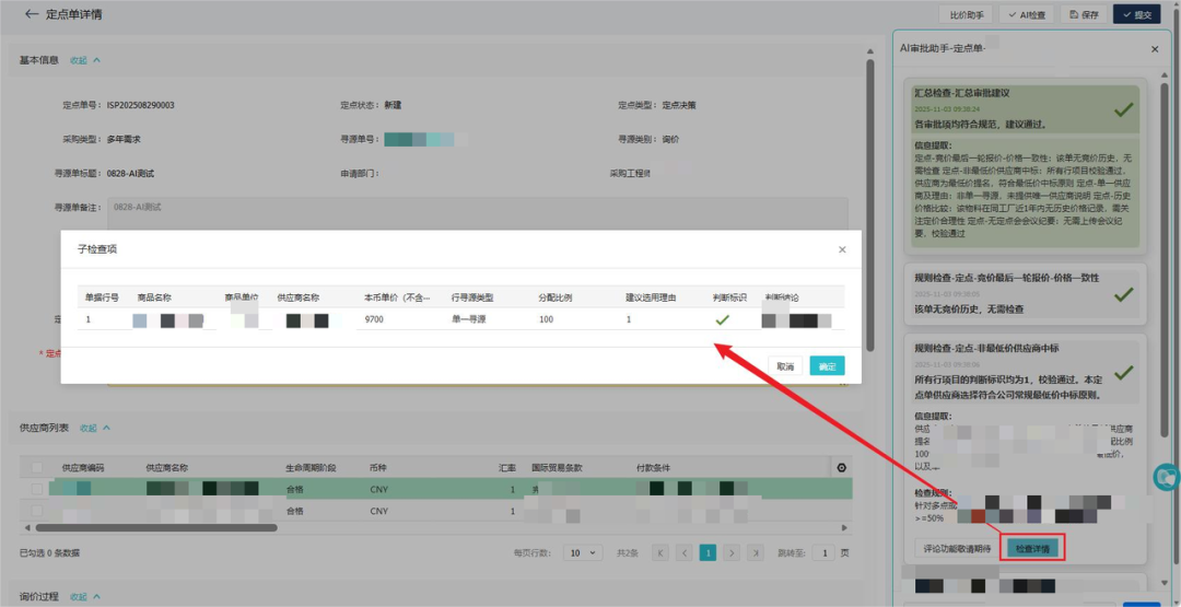 ◈ 全场景覆盖:从供应商准入(校验营业执照、体系认证)、寻源定点(检查会议纪要项目名称/决策人)到PO单据(比对价格库/定点单一致性),全链路无死角